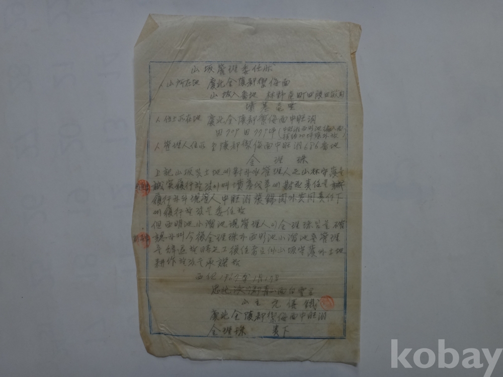 산판(山坂) 관리 위임장 - 경북 금릉군 어해면..산판 (1967년)