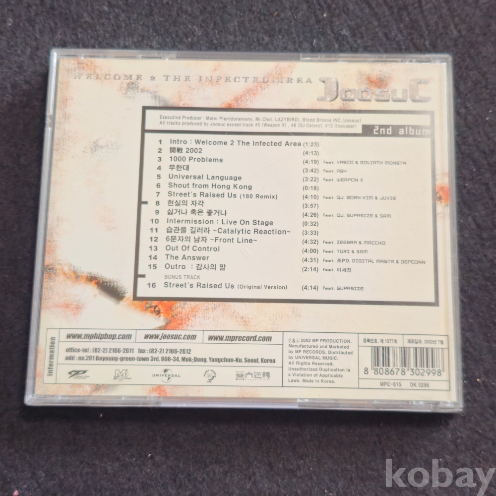 (천원경매) (((국내가요/POP/가요 CD))) 주석 (Joosuc) 2집 Welcome 2 The Infected Are CD (2002) 친필싸인