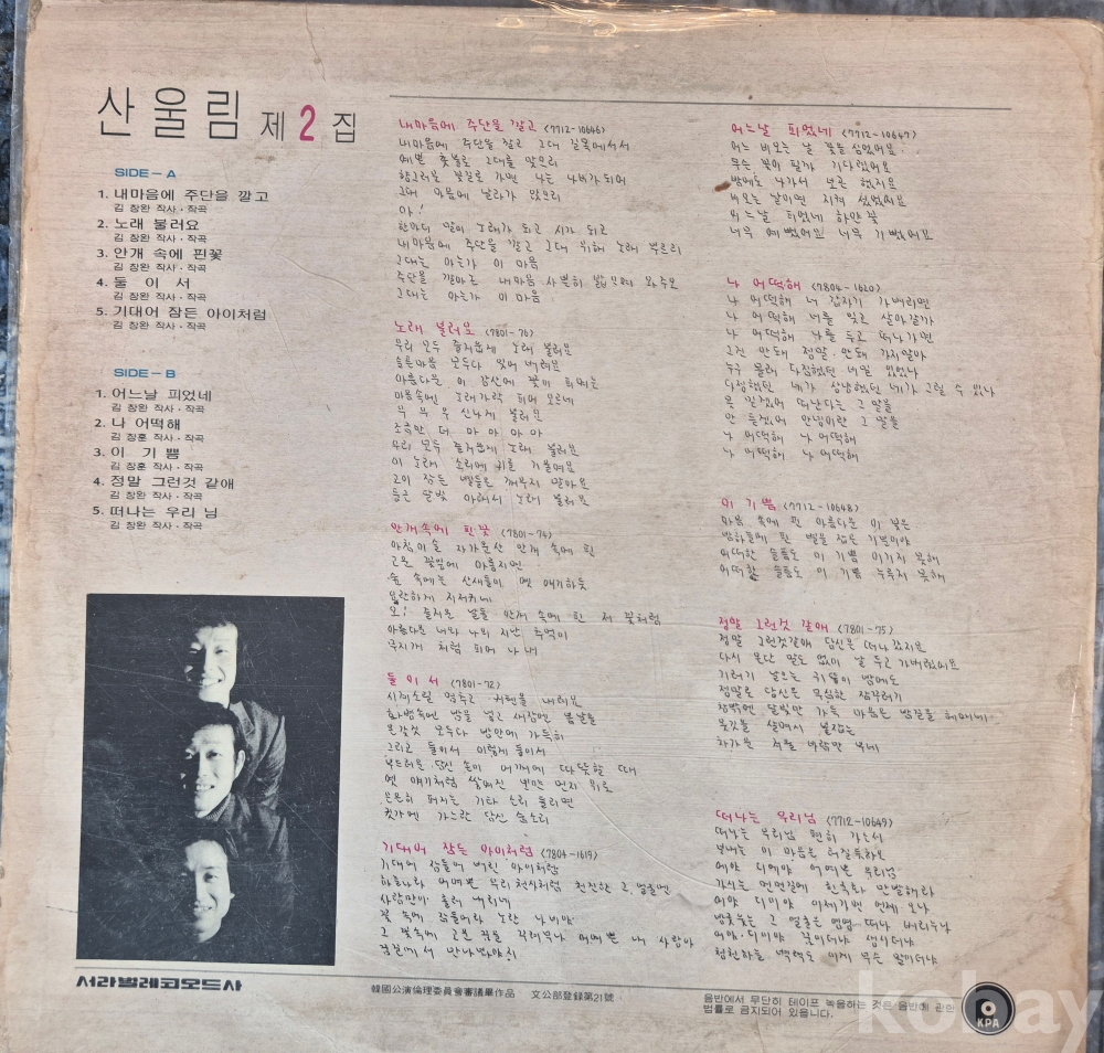 | 자켓상태 | EX : 약간의 마모, 모서리 찢김 존재 | 음반상태 | EX : 재생에 영향 없는 가벼운 기스 존재 | 발매정보 | 초반 | 가사지여부 | 유 |