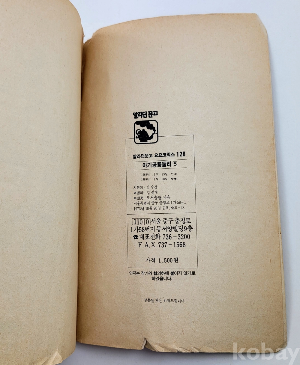 물 품 명 | 김수정 / 아기공룡 둘리(5) / 알라딘문고(126) / 1989년 초판 / 도서출판 예원 |