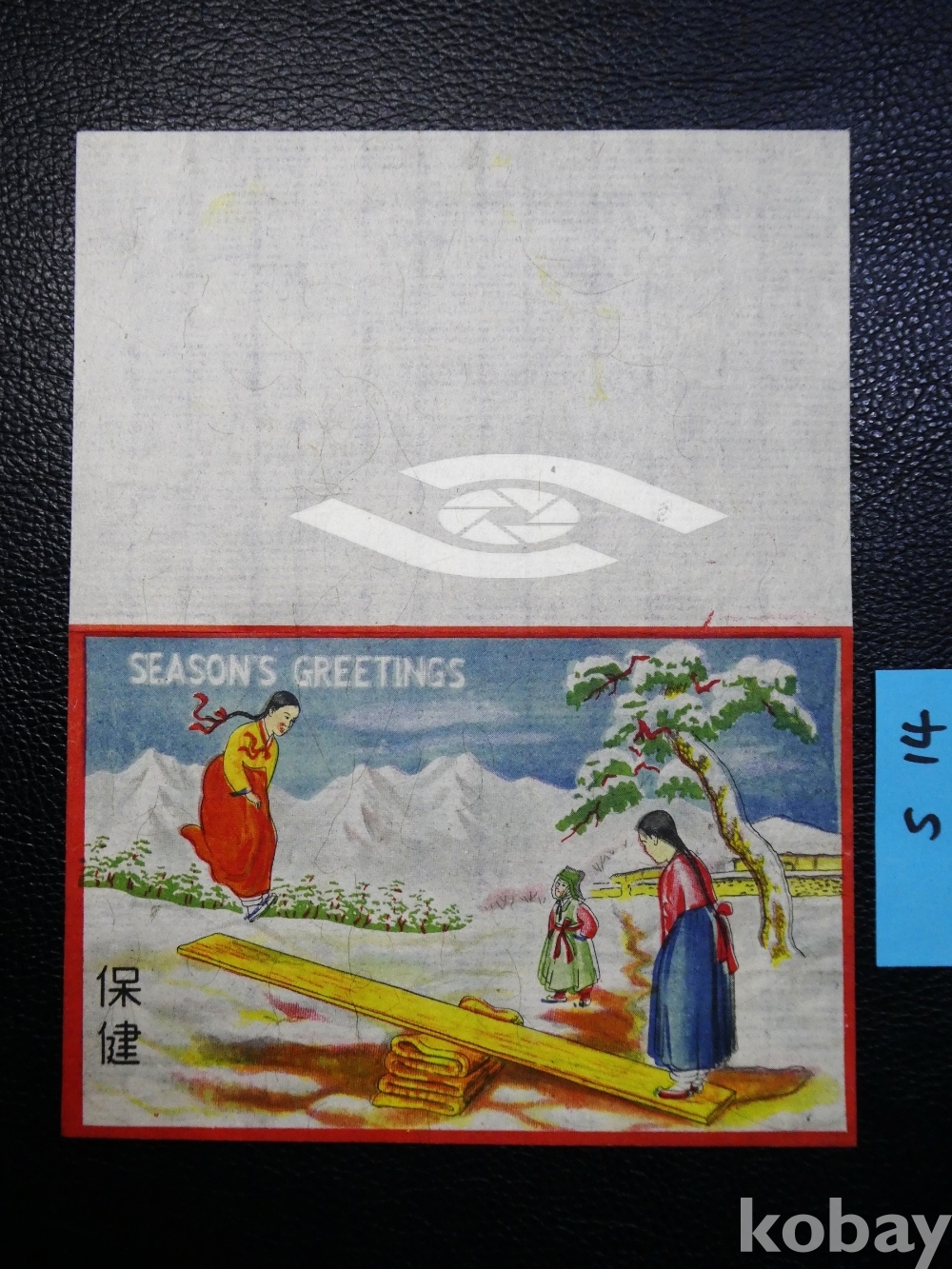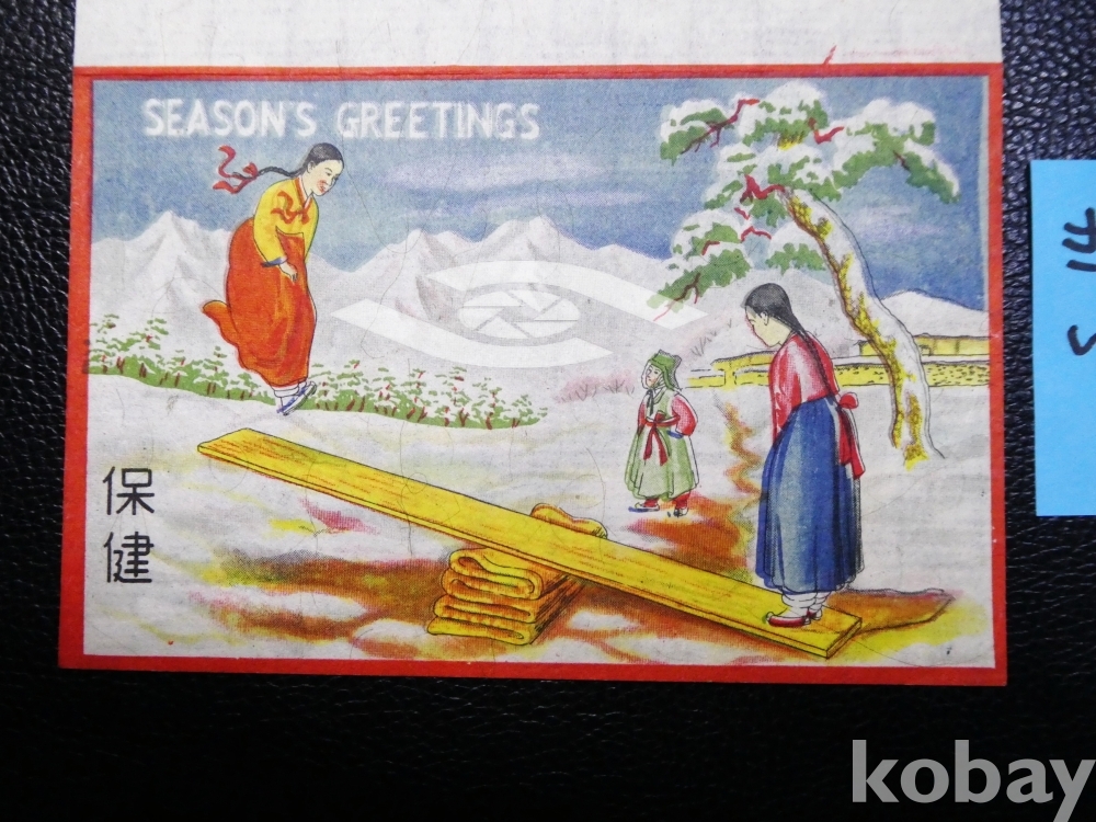 ▣해주구세요양원 1935년 <널뛰기> 크리스마스씰의 한지 연하장. 셔우드 홀 박사 제작.