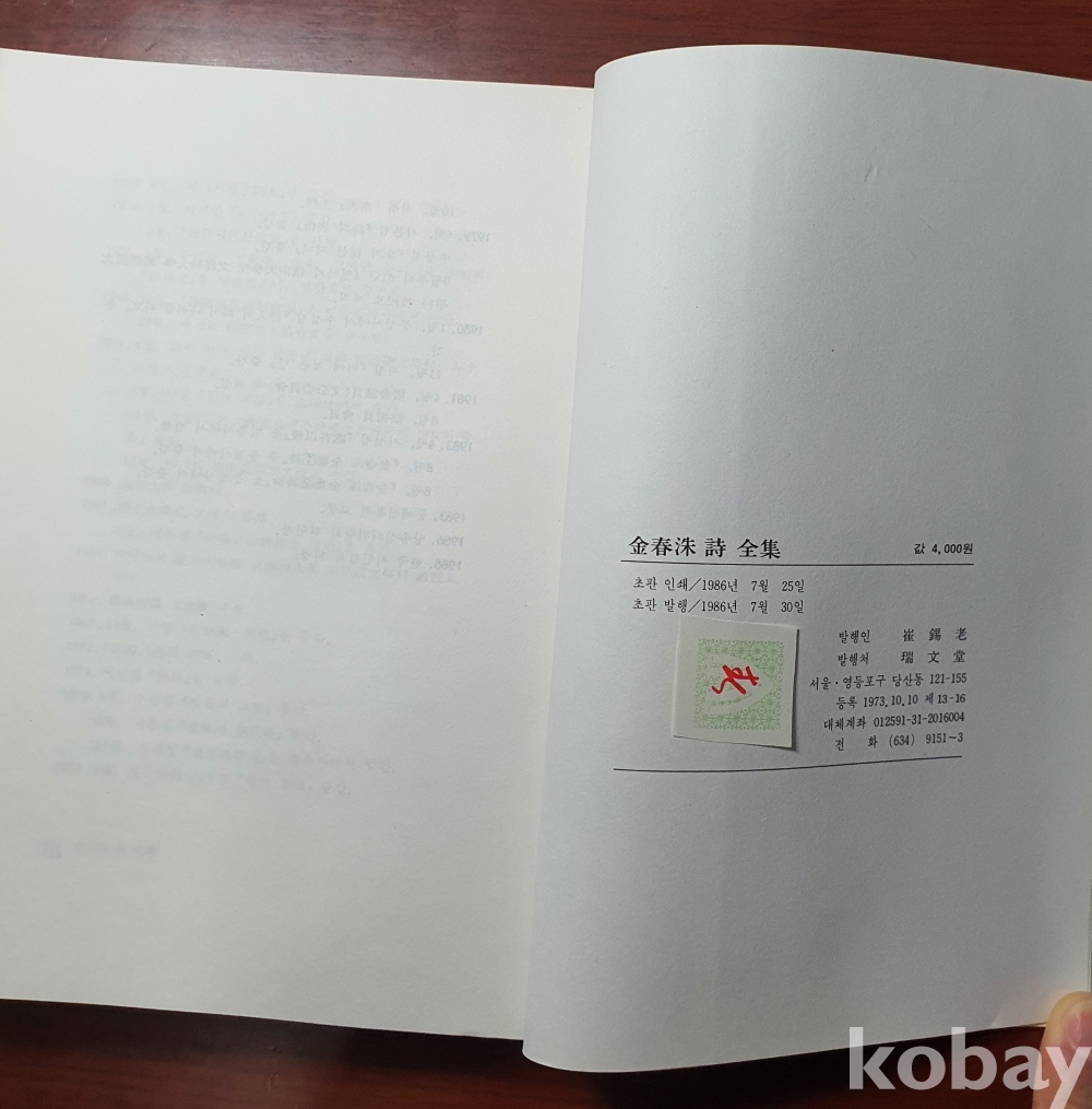 김춘수,서문당,1986년 초판,상태는 양호 깨끗한 책