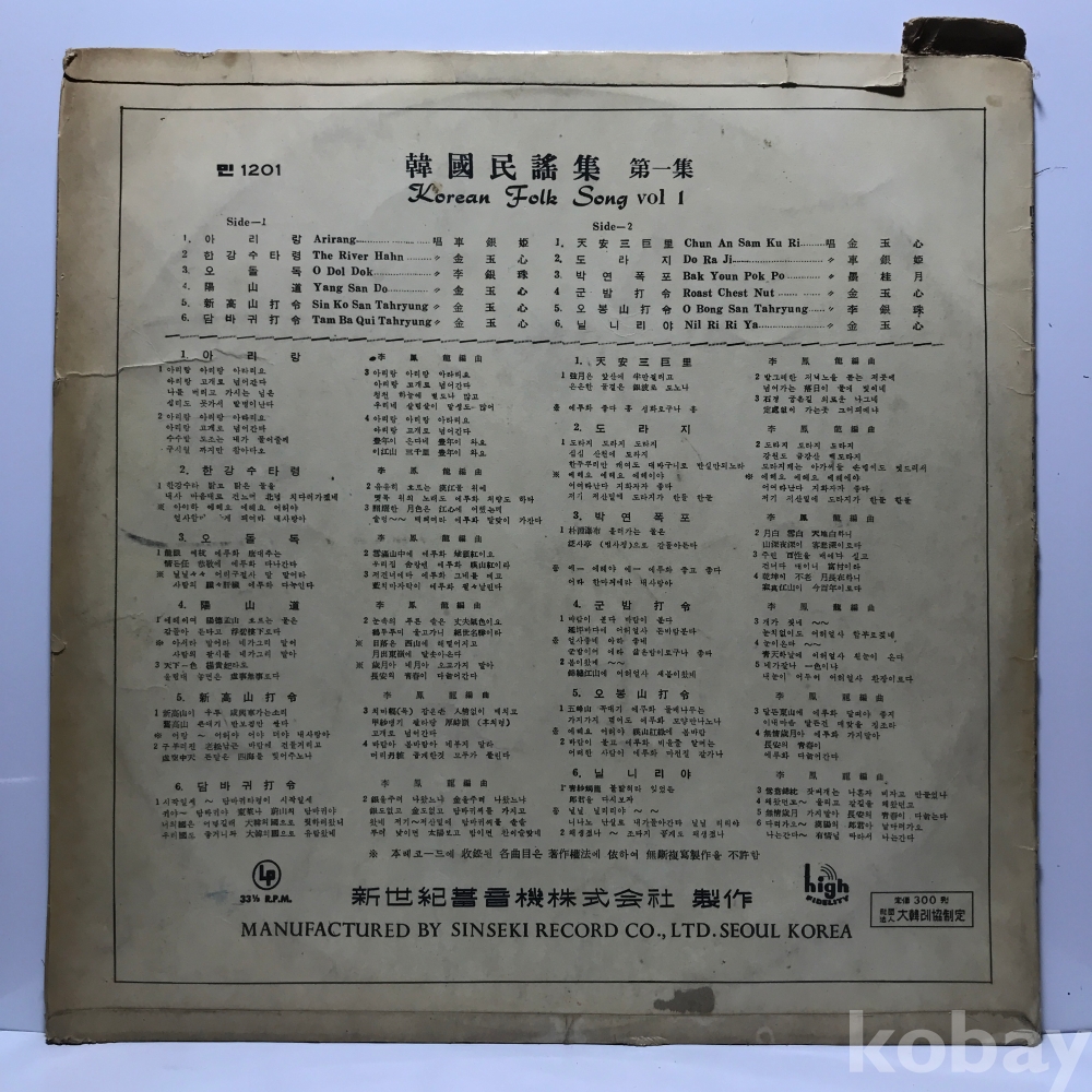| 자켓상태 | EX : 약간의 마모, 모서리 찢김 존재 | 음반상태 | VG : 생활 기스 다수, 가벼운 노이즈 존재 | 발매정보 | 알수없음 | 가사지여부 | 무 |