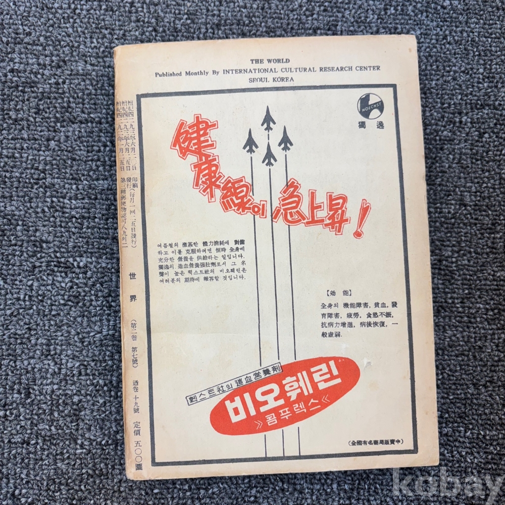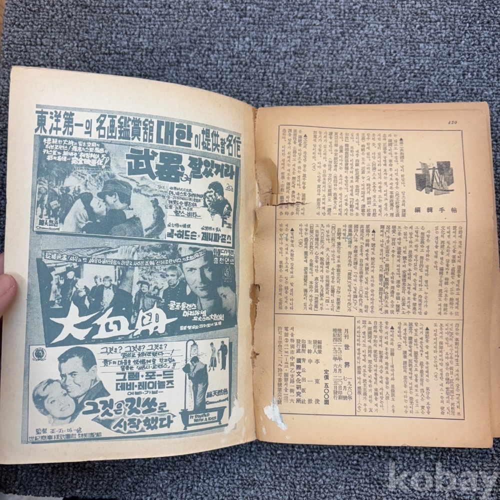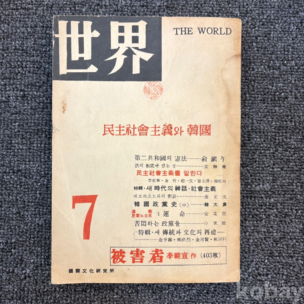 [희귀본, 사회주의, 제2공화국 헌법, 한국정당사] <세계 1960년 7월>, 국제문화연구소, p. 420, 상태 상급(겉표지 얼룩, 사진참조)