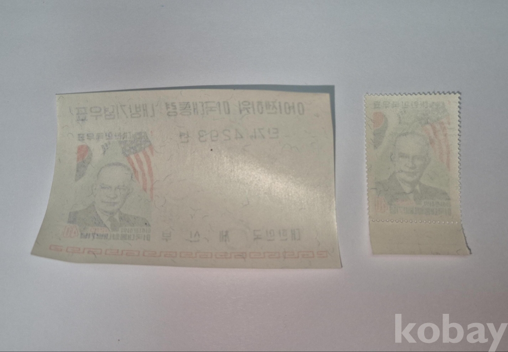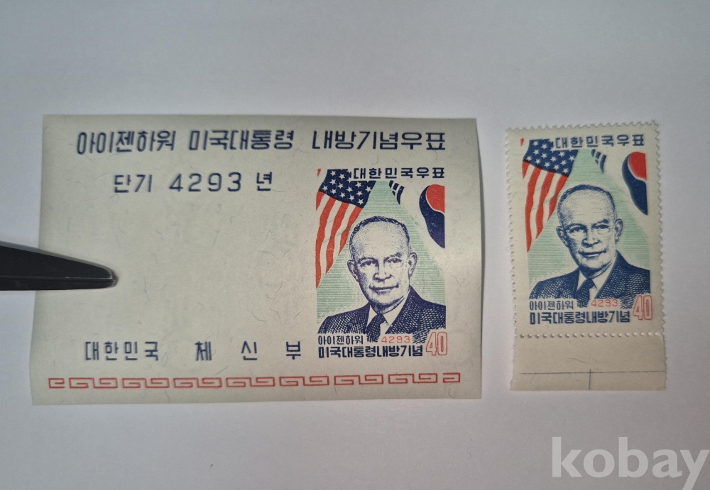 1960 '미국대통령 아이젠하워 내방 기념우표' 시트 및 변지부 1매입니다.