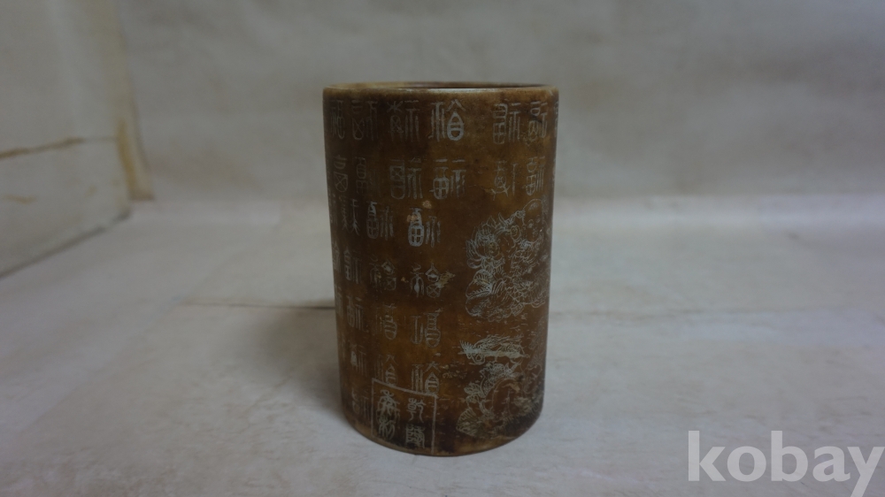◈◈청대../황유 글자.동자문,ㅡ''원형 필통 한점◈◈