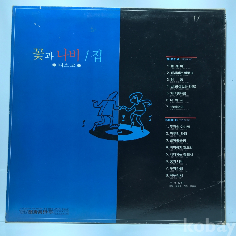 LP 85,100-2 꽃과 나비 1집 (디스코) 물레야/ 무역선 아가씨 자켓 EX 알판 EX 87 년 국내반