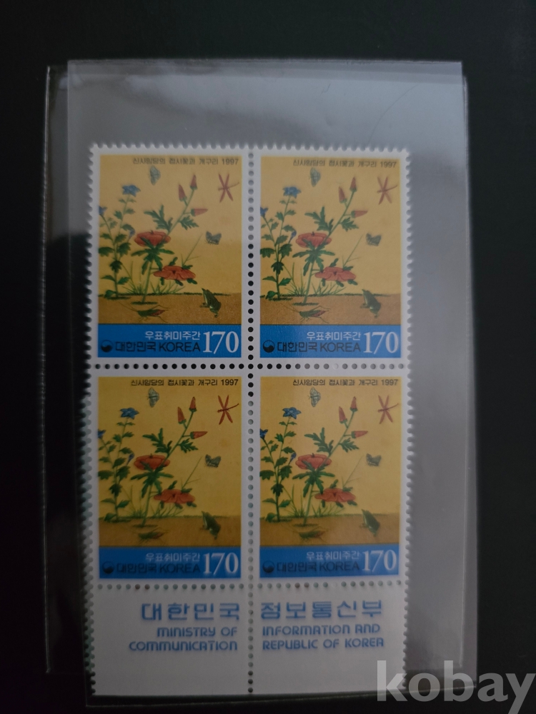 미 사용 우표 4B/L 97'우표취미주간접시꽃과 개구리