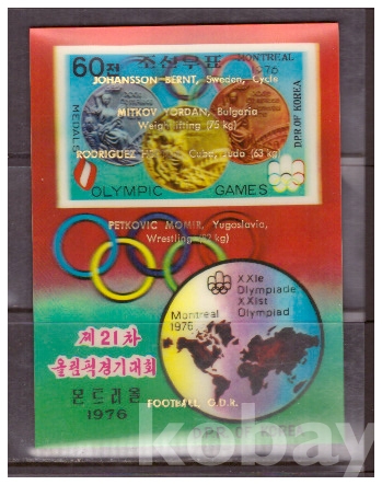 (올림픽) 북한 1977.1.23 제21차 올림픽경기대회 우승자들 s/s(립체)(덧인쇄) MNH