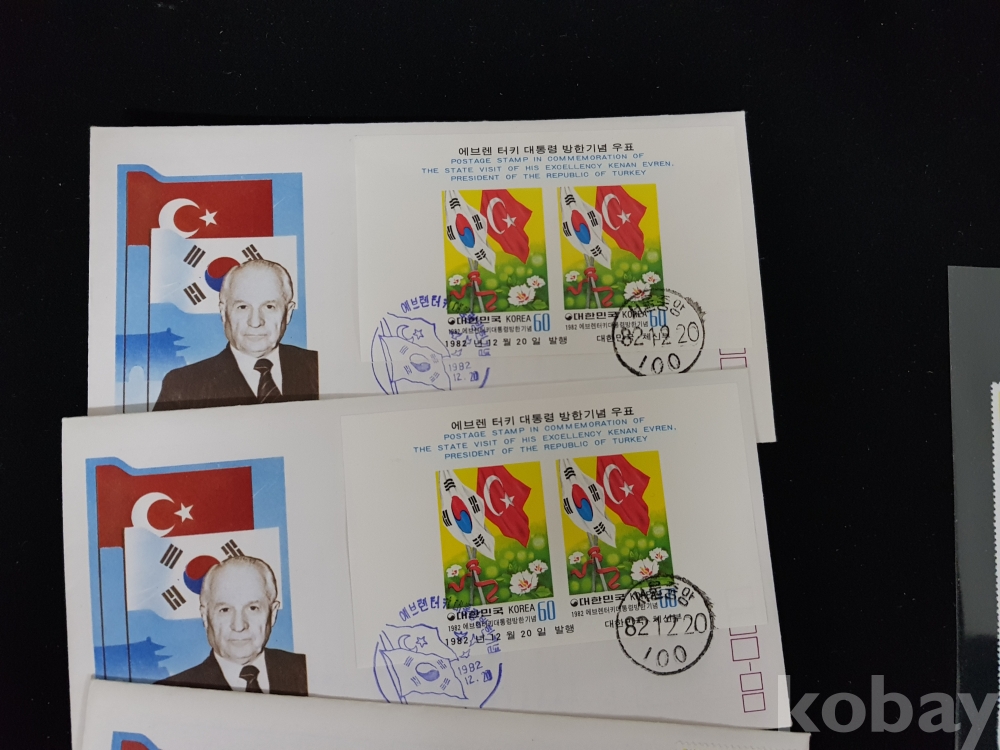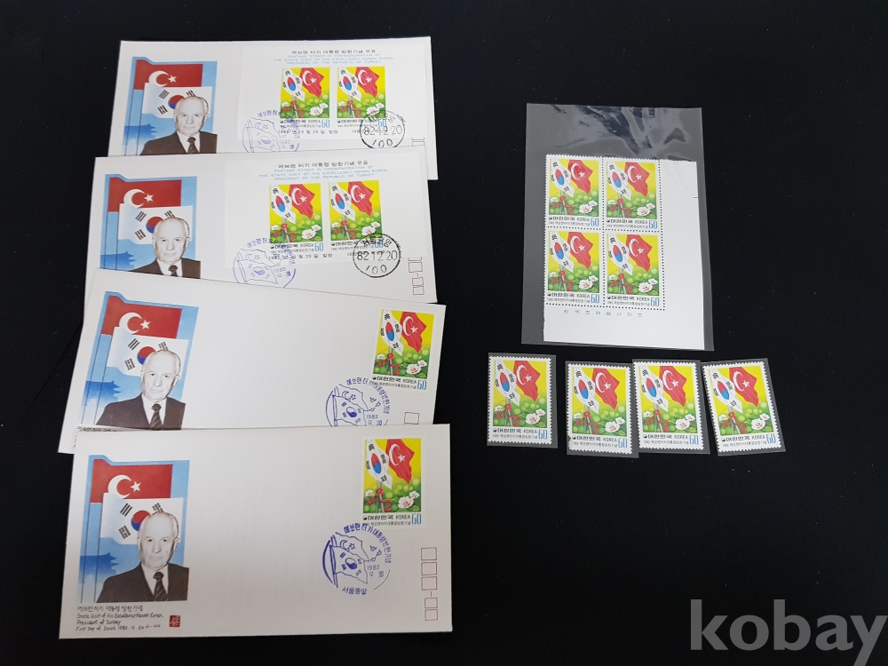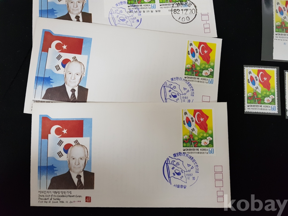 - 1982년 에브렌 터키 대통령 안내카드, 초일봉피, 명판 등 모음