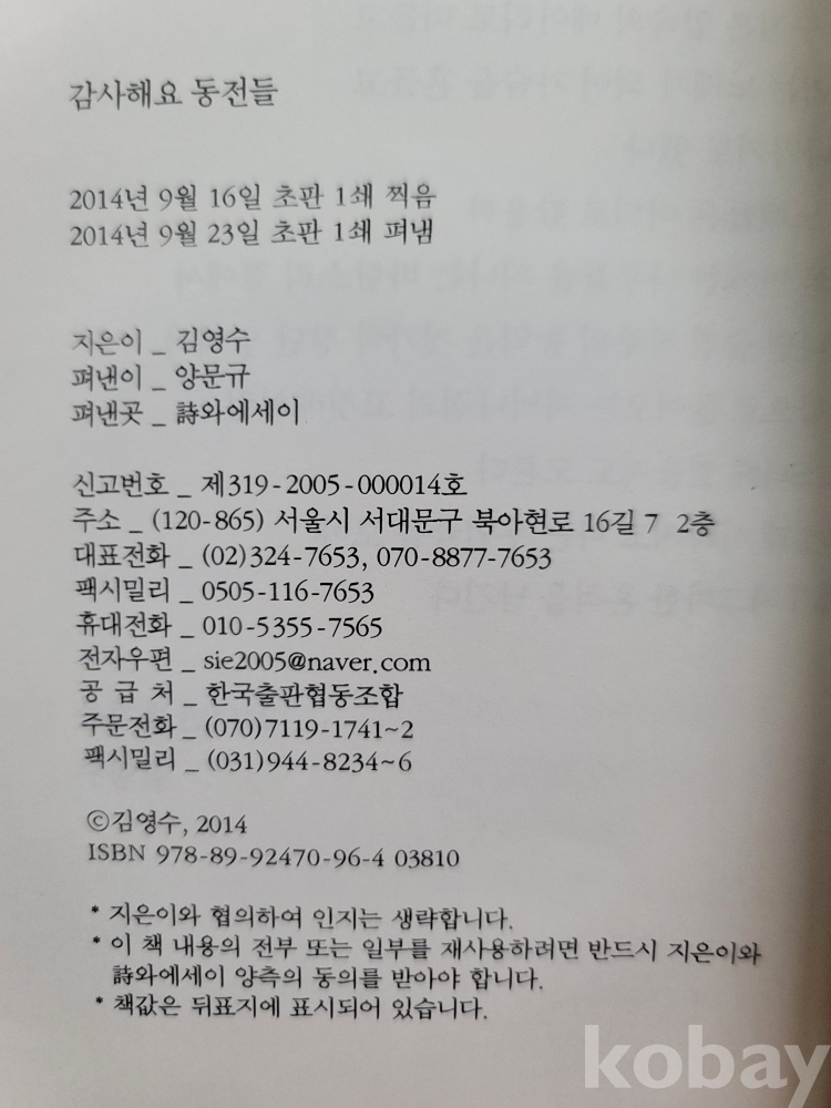 2014년 발간한 첫 시집 『감사해요 동전들』
