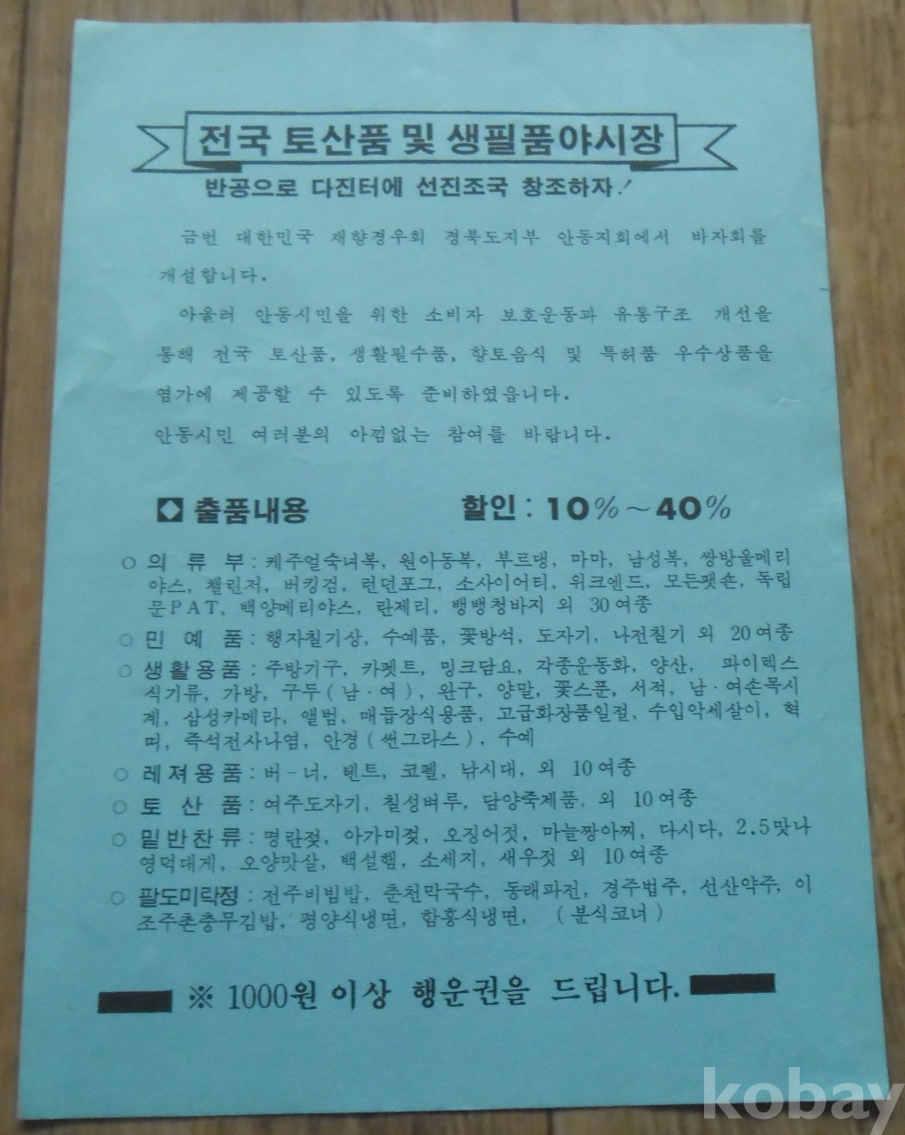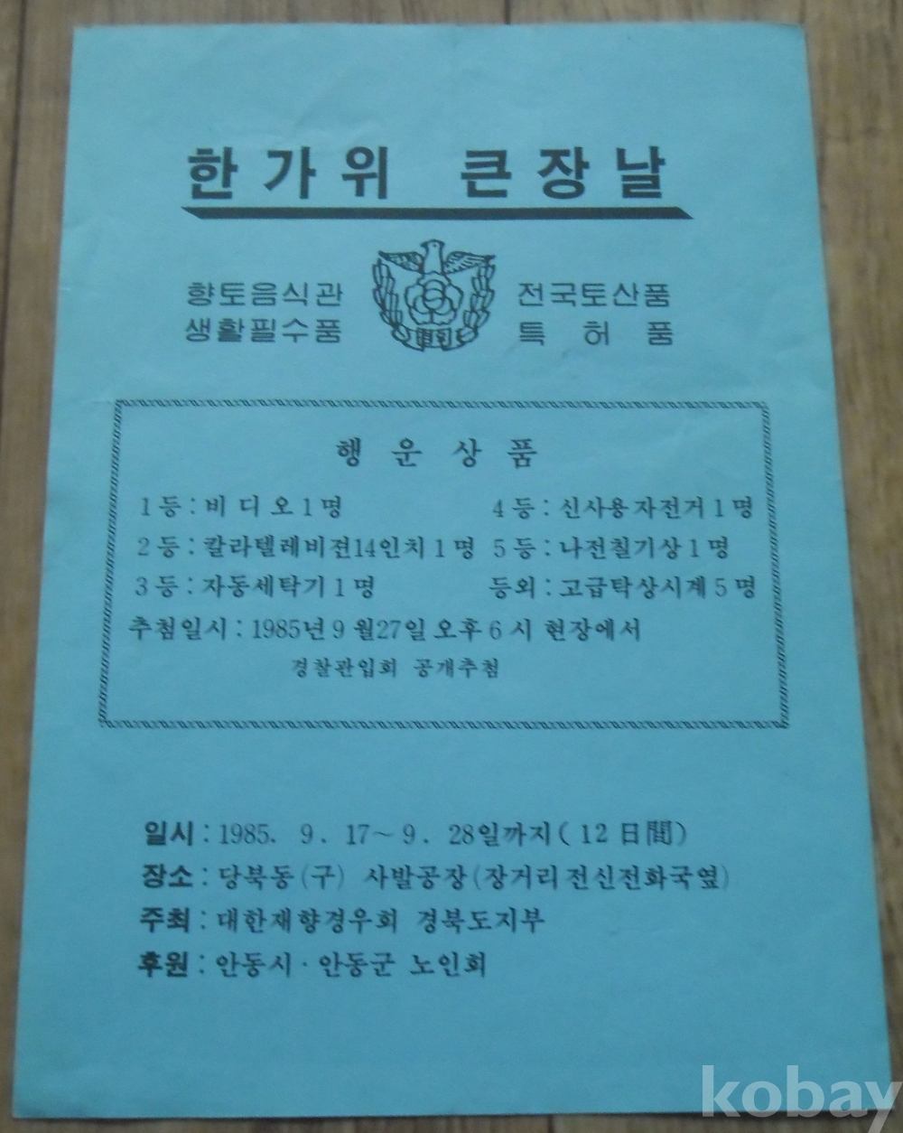 안동자료(전단지): 1985년 안동시 후원 한가위 큰 장날