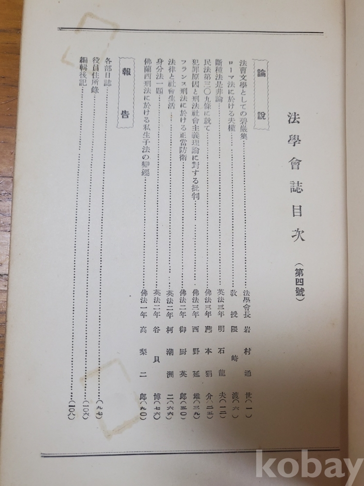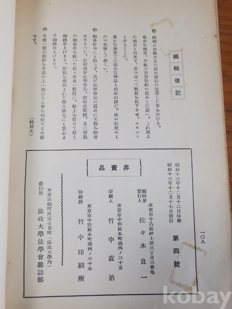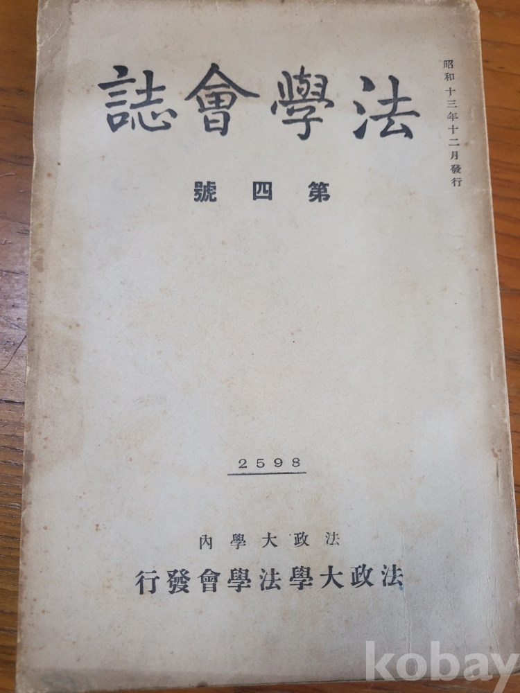 1. 법학회지 제4호, 법정대학법학회, 1938년, 108쪽, 비매품, 상태 상, 사진 참조