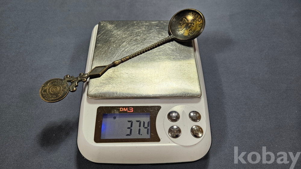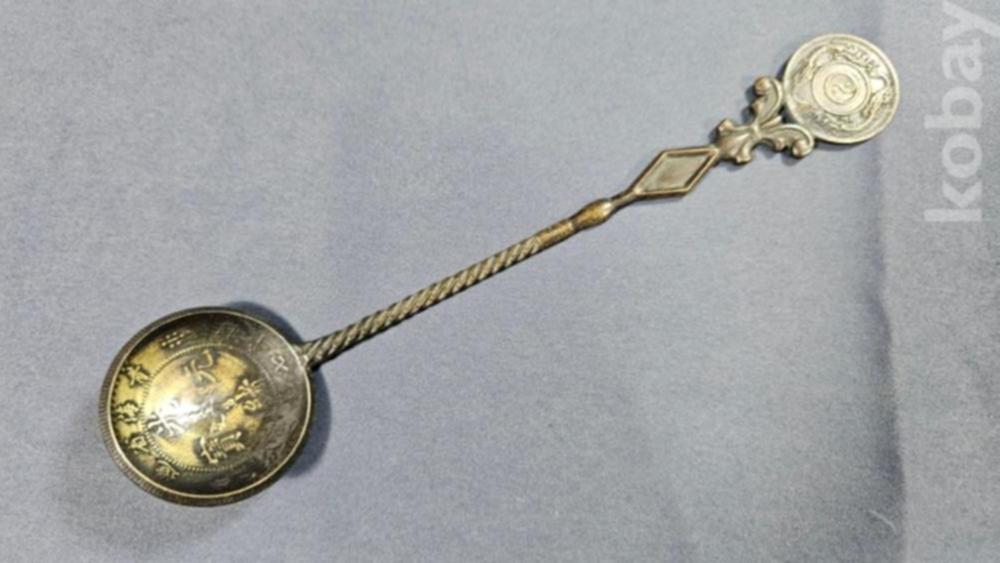 귀한 二錢 주화가 붙어있는 재미난 형태의 스푼입니다.