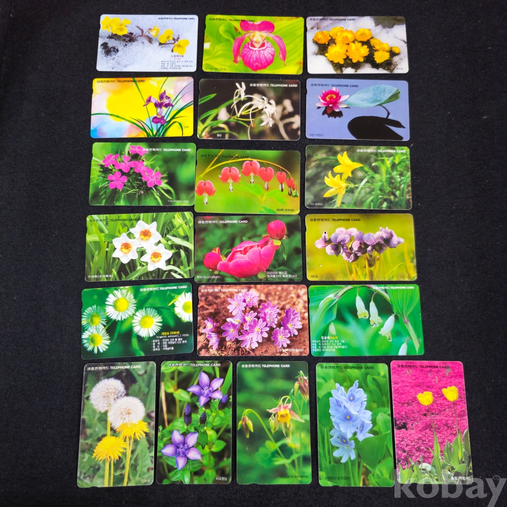 (((근현대사자료/공중전화카드))) 오래전 식물 공중전화카드 20종 (사용제)