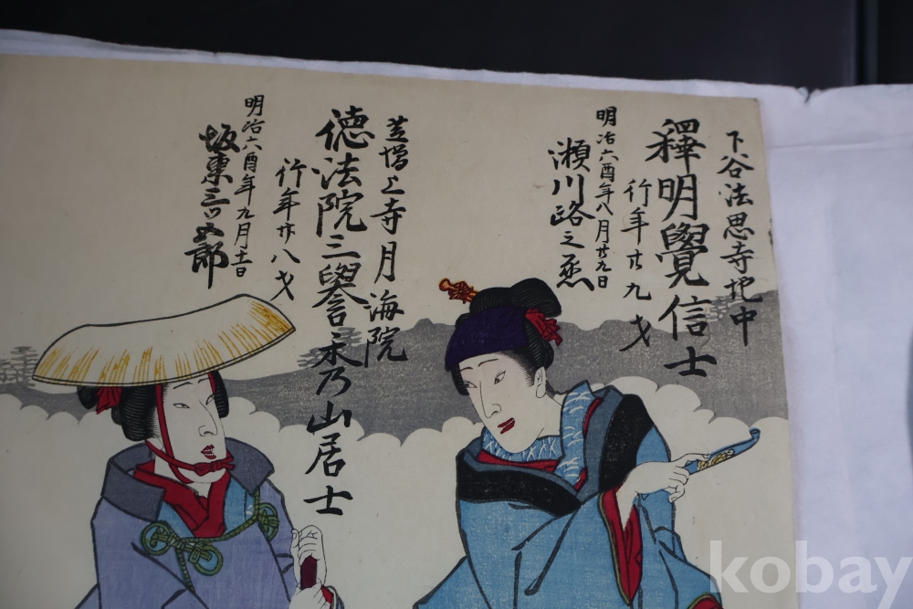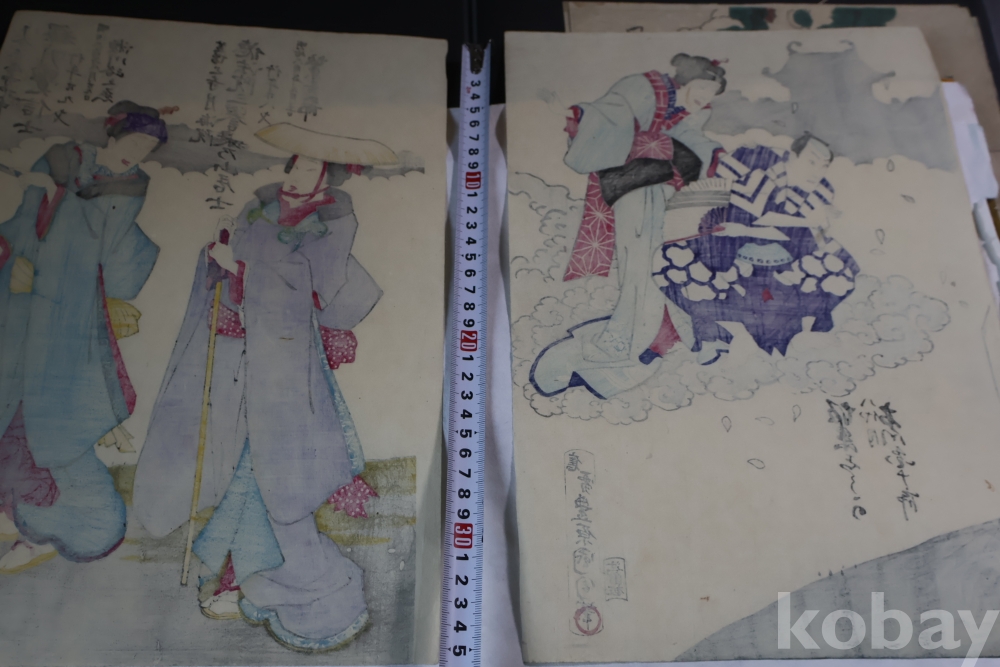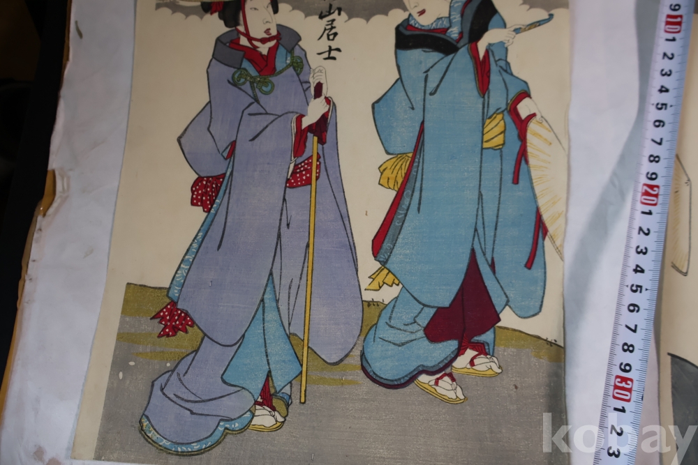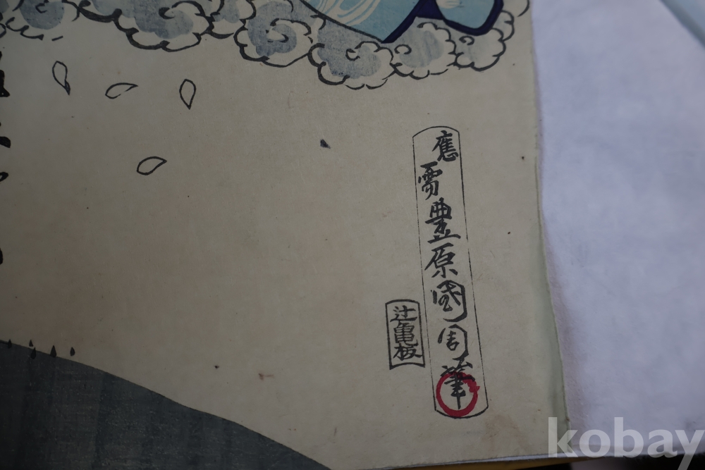 섬세 정교한 19세기 목판화 임니다 일본의 우키요에 목판화 임니다 Toyohara Kunichika (Japanese: 豊原 国周