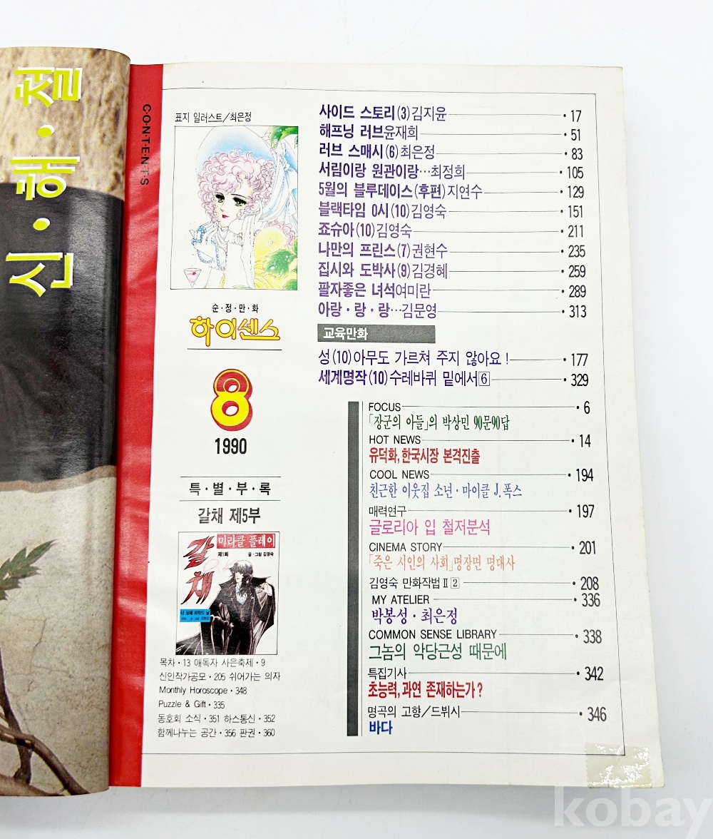 상품 설명 | 김영숙의 <죠슈아> 등의 연재작과 교육만화, 스타 스토리 등의 다양한 컨텐츠가 담긴 순정 만화 잡지 '하이센스' 이다. 총 360p. | ||