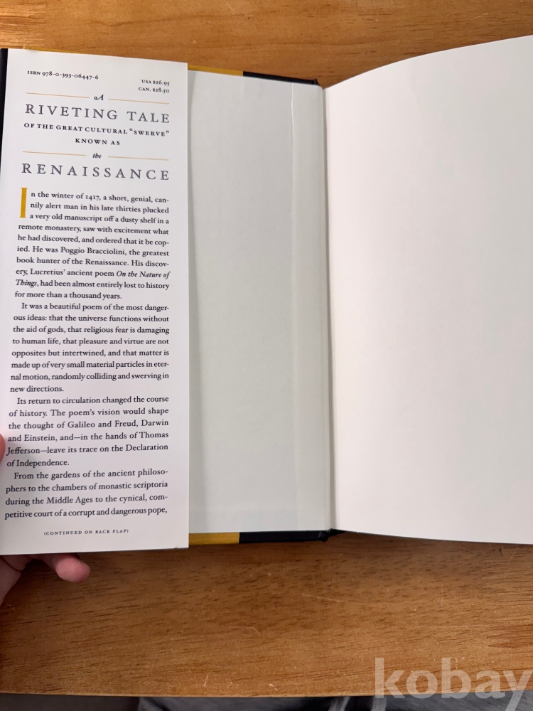 [서양문명사, 르네상스] Stephen Greenblatt, <The Swerve : How the World Became Modern>, W W Norton & Co Inc, 2011, p. 356, 상태 상급(사진참조)