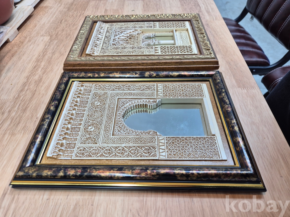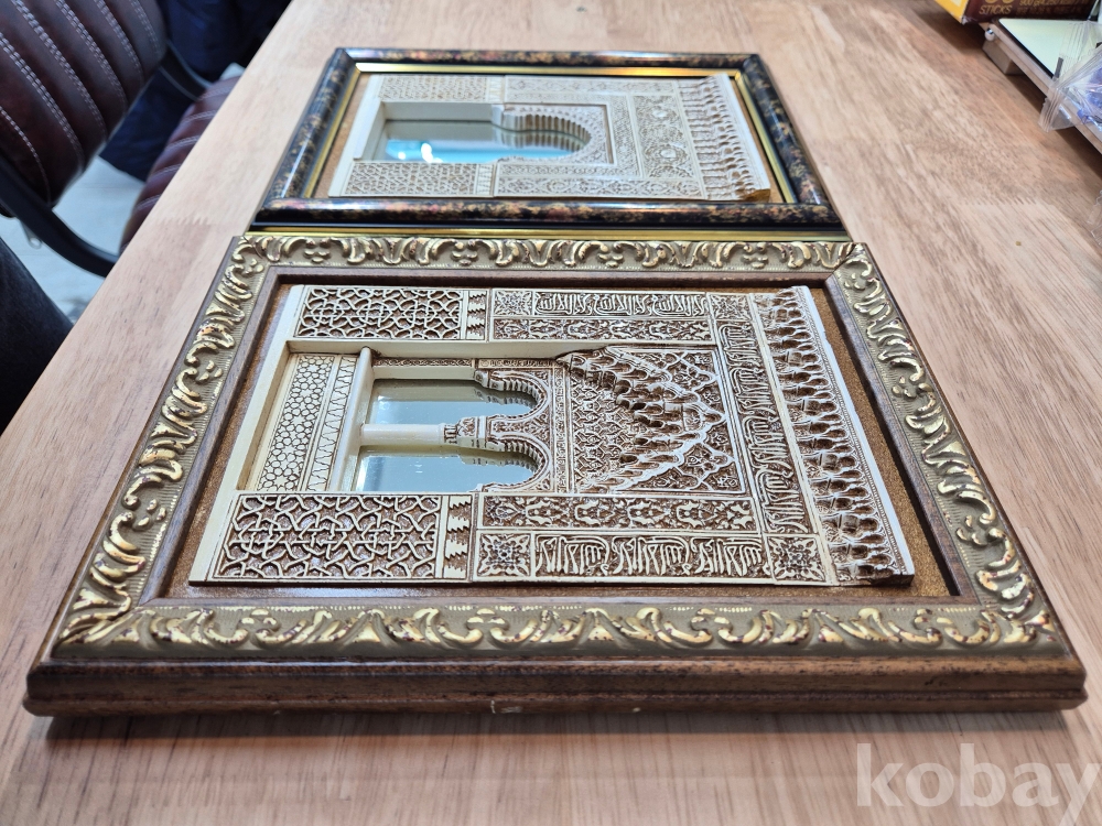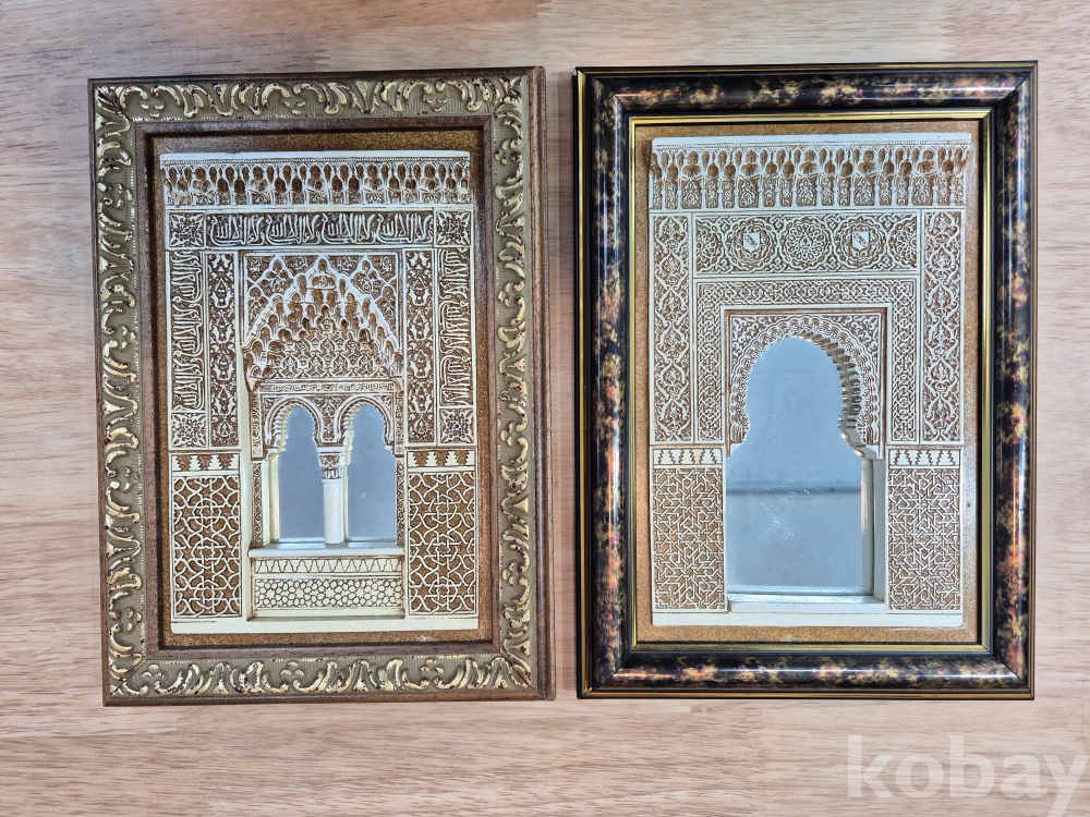 스페인 수공예품 그라나다 알함브라 궁전 석고 조각 액자 2개입니다