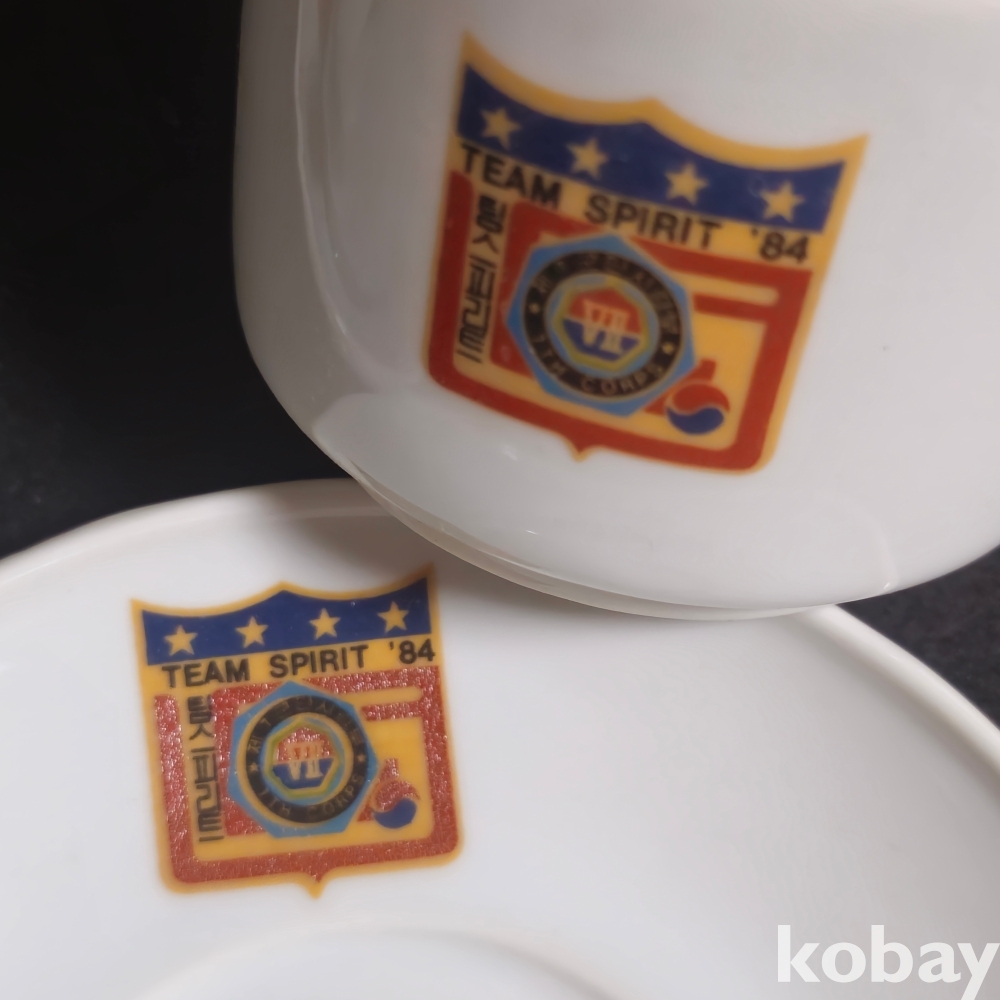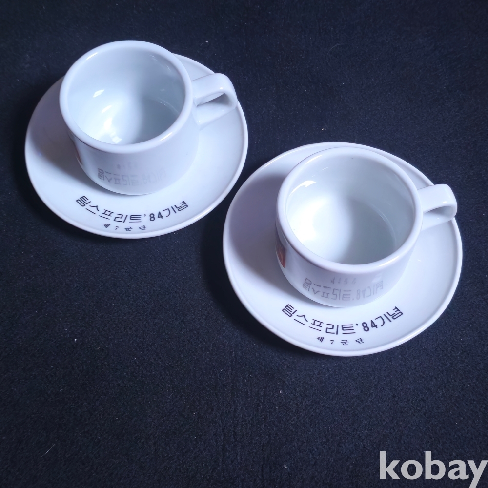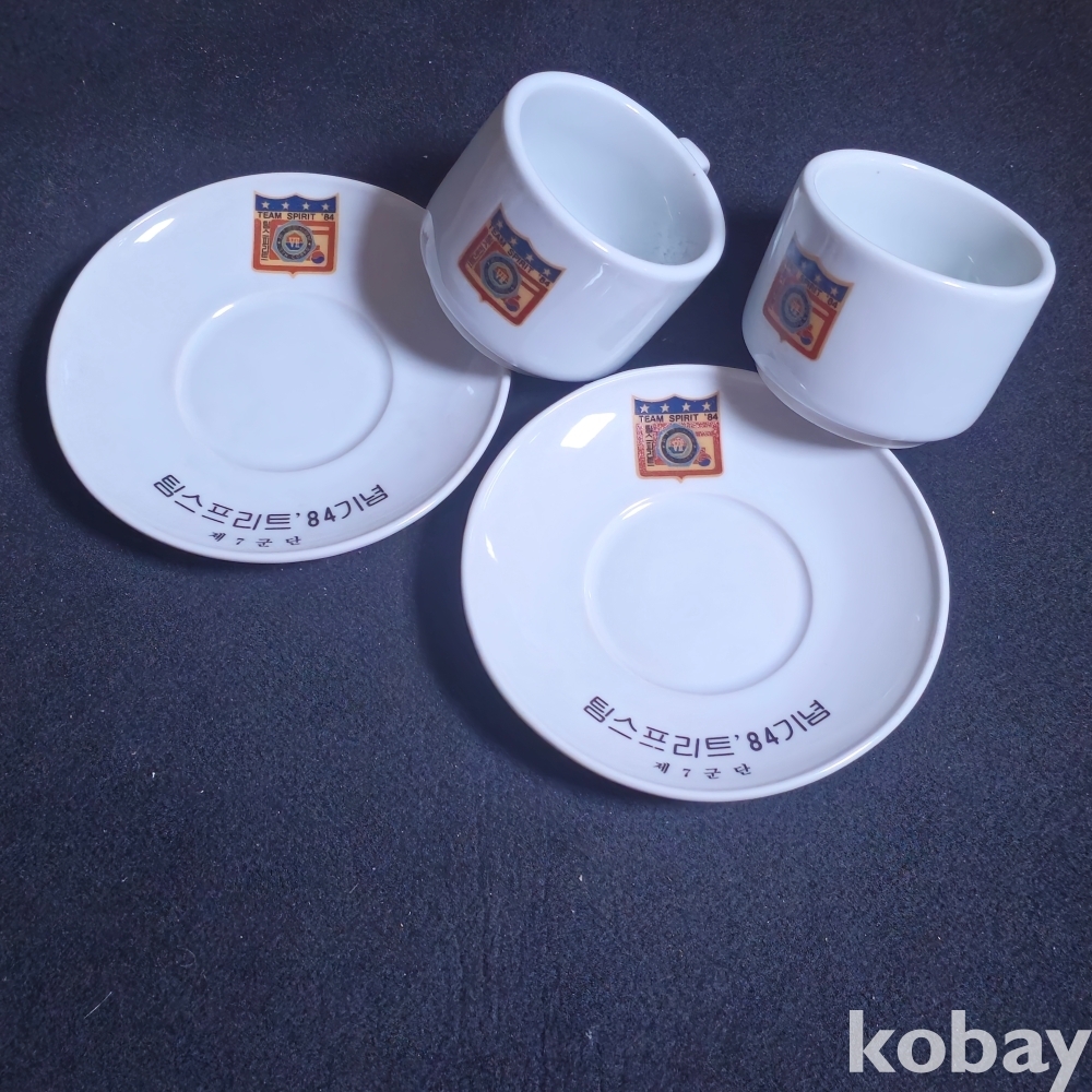 (((군자료))) 팀스프리트 '84 기념 커플 도자기커피잔과 잔받침 (제7군단)