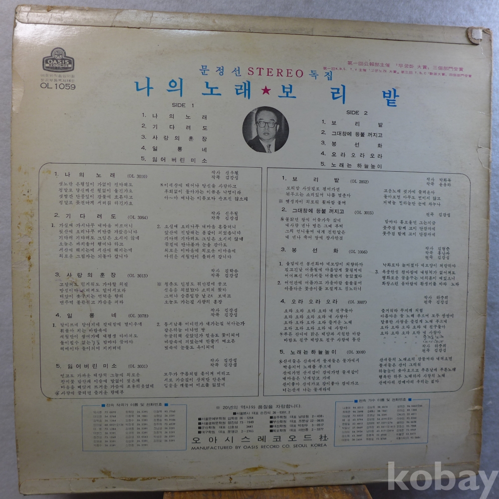 (귀한)LP음반: 문정선의 "나의 노래", "보리밭"등 수록앨범