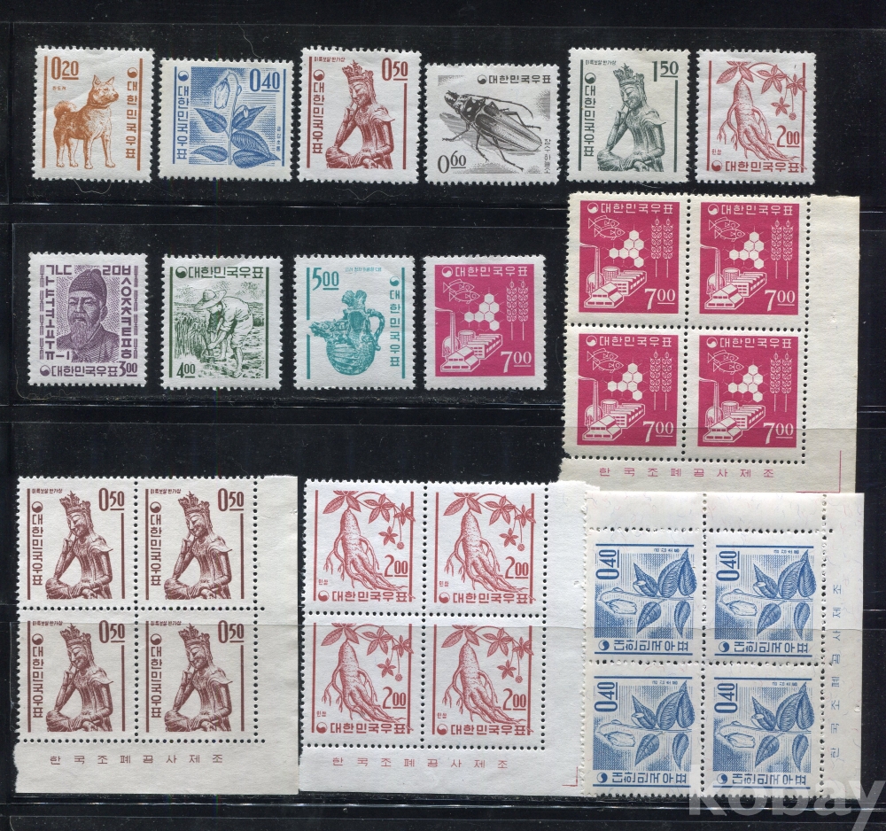 - [우표/명판] 1964년 미사용 1차 국산백지 우표/명판 모음 ( All MNH : Mint Not Hinged)