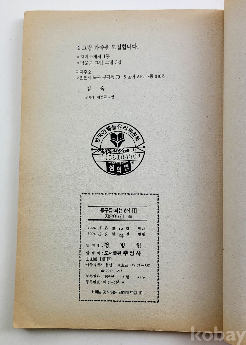 물 품 명 | 김숙 / 꽃구름 피는 곳에 (1~9)완결 총9권 / 1994년 초판 / 추성사 |