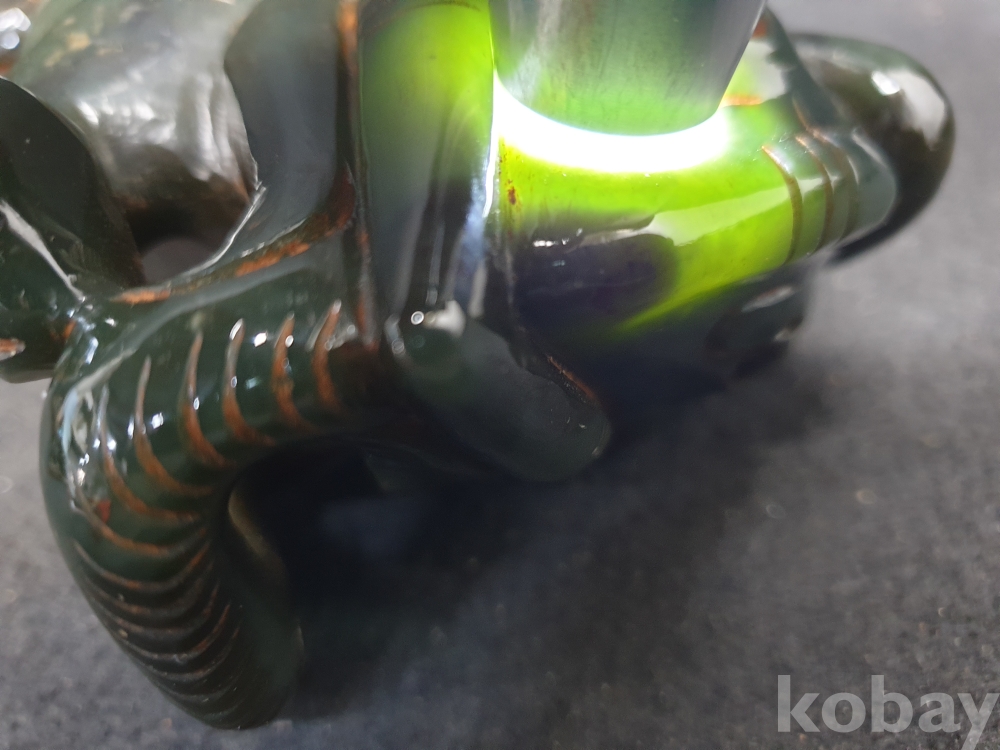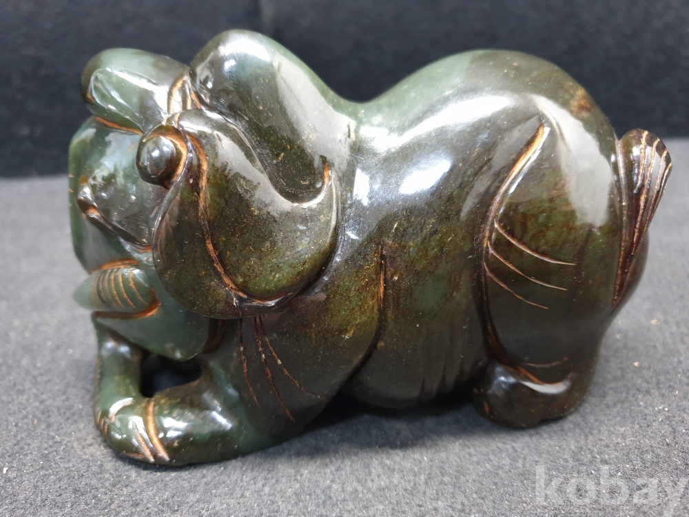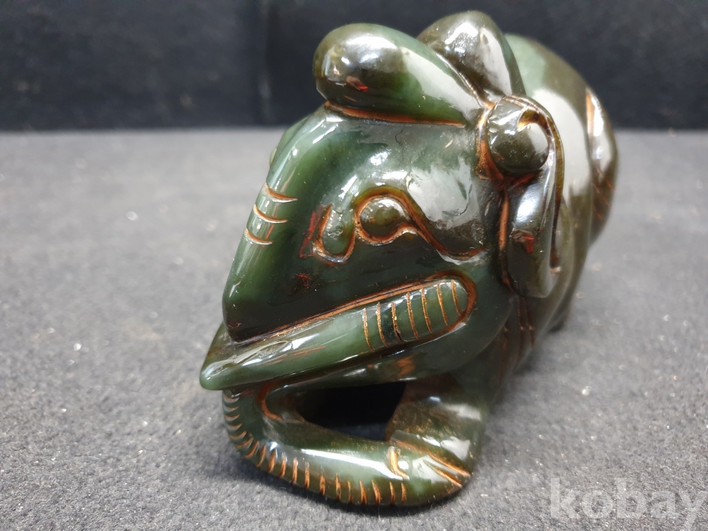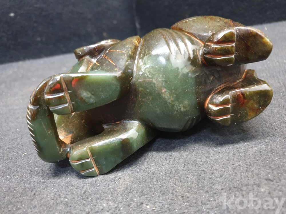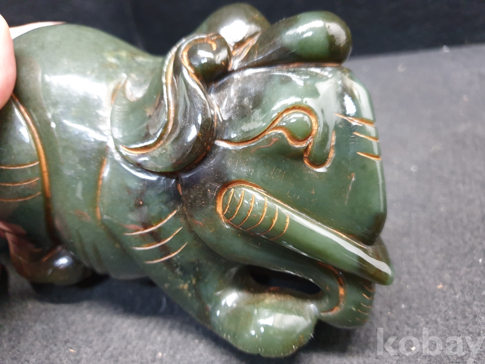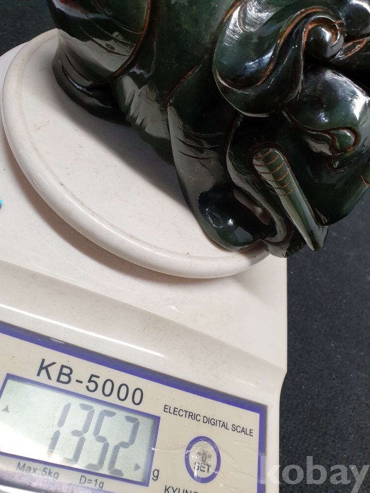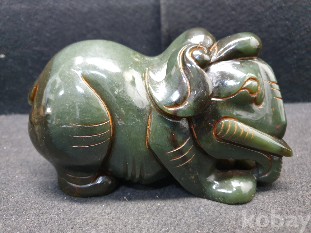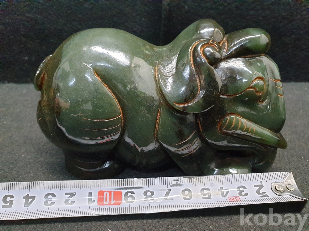 사이즈:.높이:9센치.지름:15센치. 무게:1352그람. 설명:통옥으로 된 출토- 춘추전국시기 이쁜 기형의 생동감이 넘치는 투명성이 좋은 깨끗한 재질의 화전옥 중에서도 아주귀한 청옥 코끼리상입니다.최대의 사진으로 본 기물의 이쁜 모습 보여드리겠습니다.상태 양호합니다.사진 참고 바랍니다.