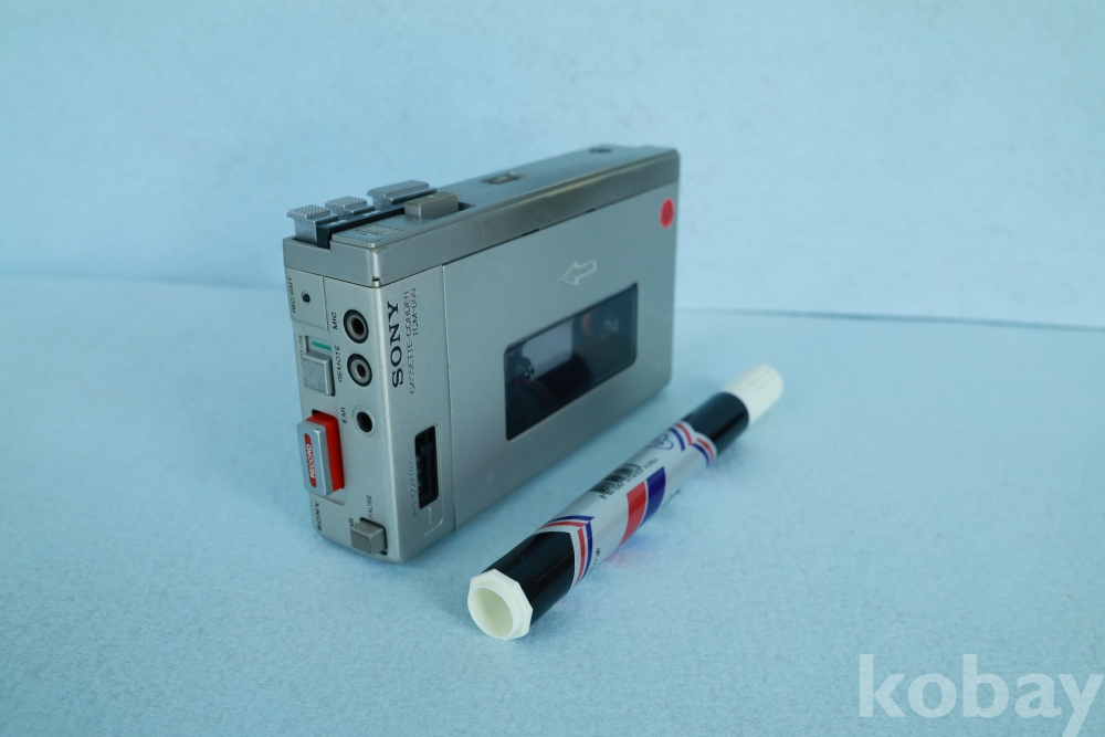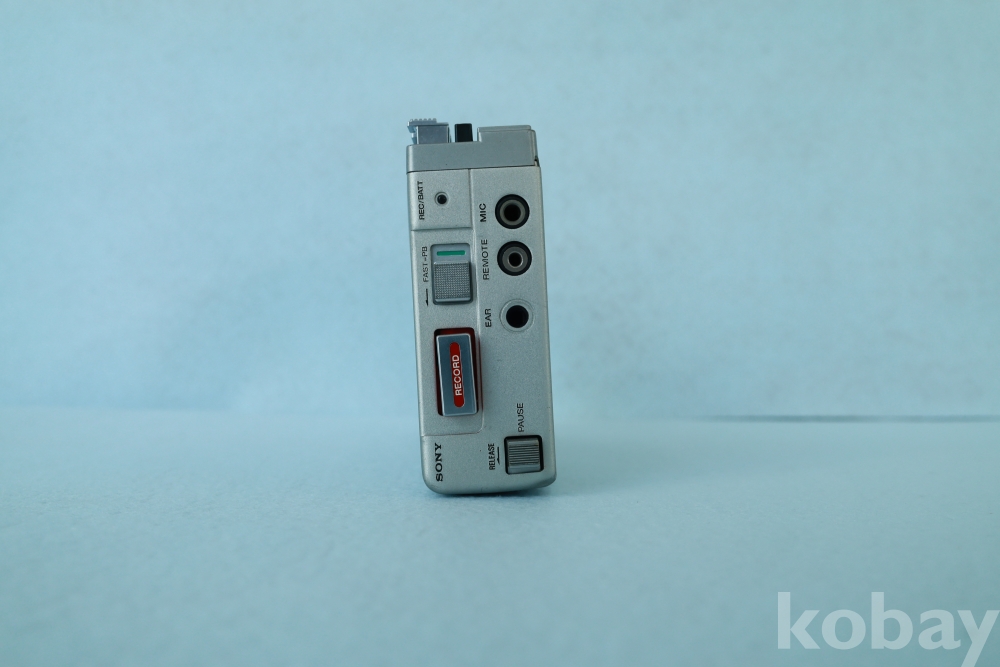 측면에 나란히 배치된 마이크·이어폰 단자와 강렬한 붉은색의 녹음(RECORD) 버튼, 그리고 전면의 아날로그 테이프 카운터 등 80년대 소니 특유의 기계적이고 정교한 디자인 철학이 외관에 고스란히 살아있습니다.