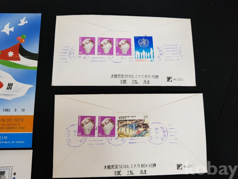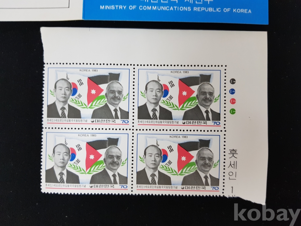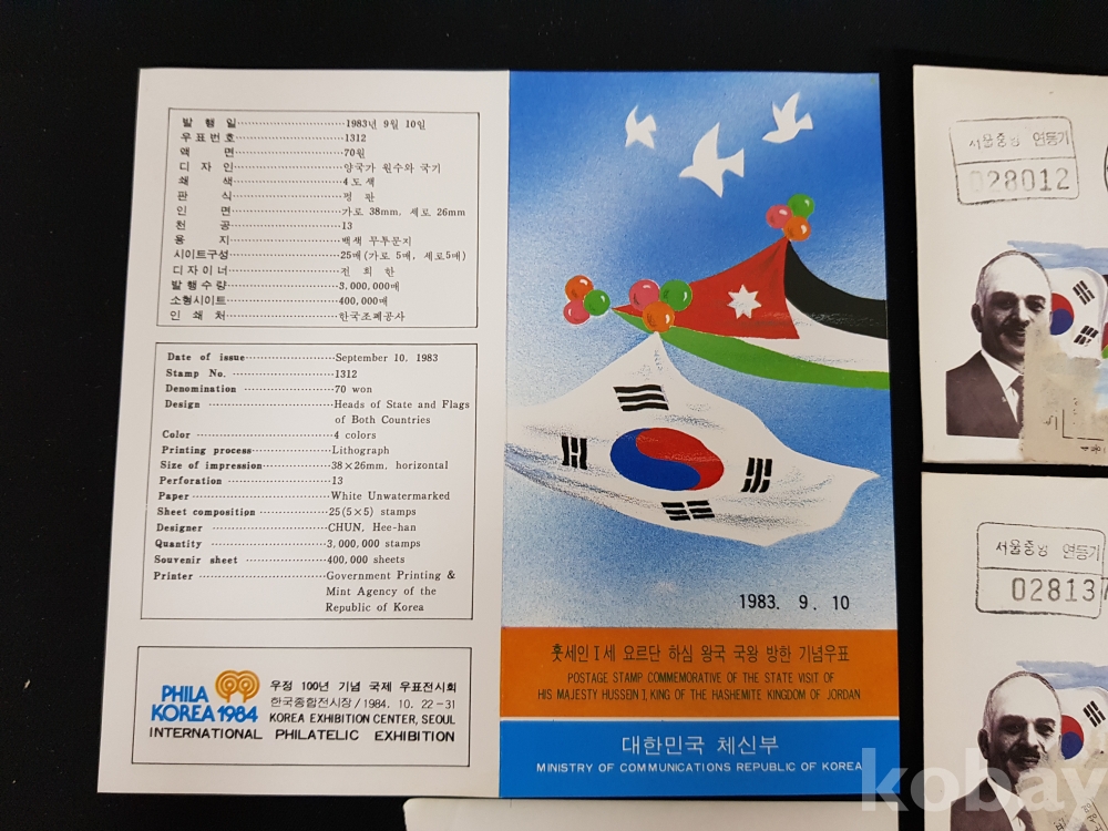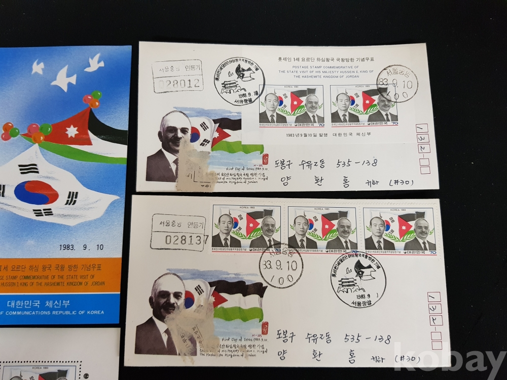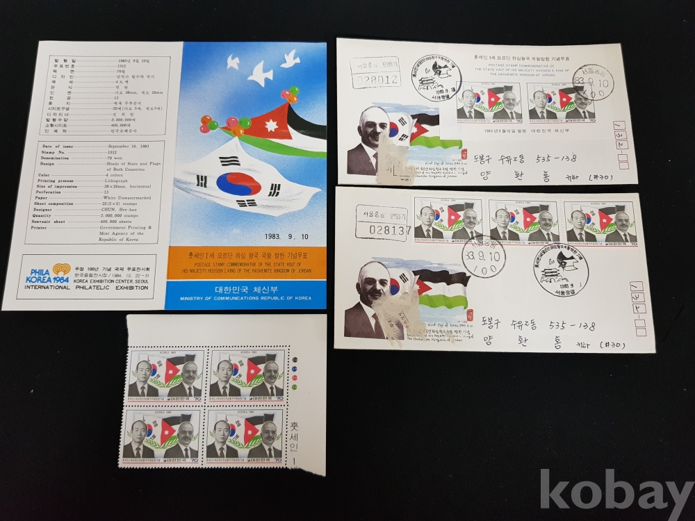 - 1983년 훗세인 1세 요르단 하심 왕국 방한 기념 안내카드, 초일봉피, 명판 등 모음