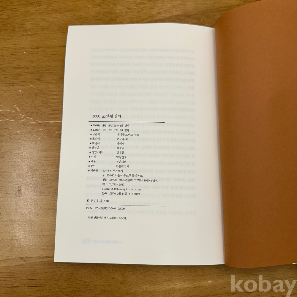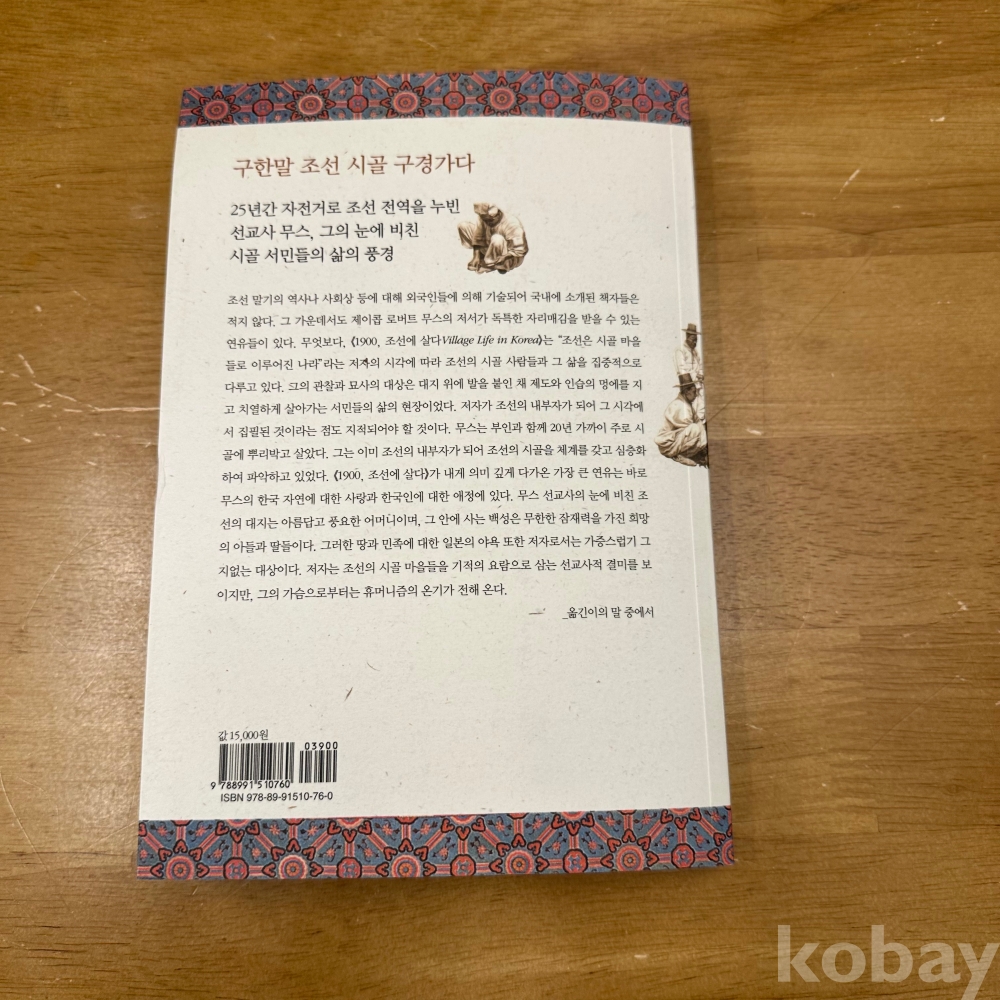 [한국근대사, 개화기, 서구인의 조선 체험] 제이콥 로버트 무스 저, 문무홍 역, <1900, 조선에 살다 구한말, 미국 선교사의 시골 체험기>, 푸른역사, 2008, p. 319, 상태 중급(사진참조)