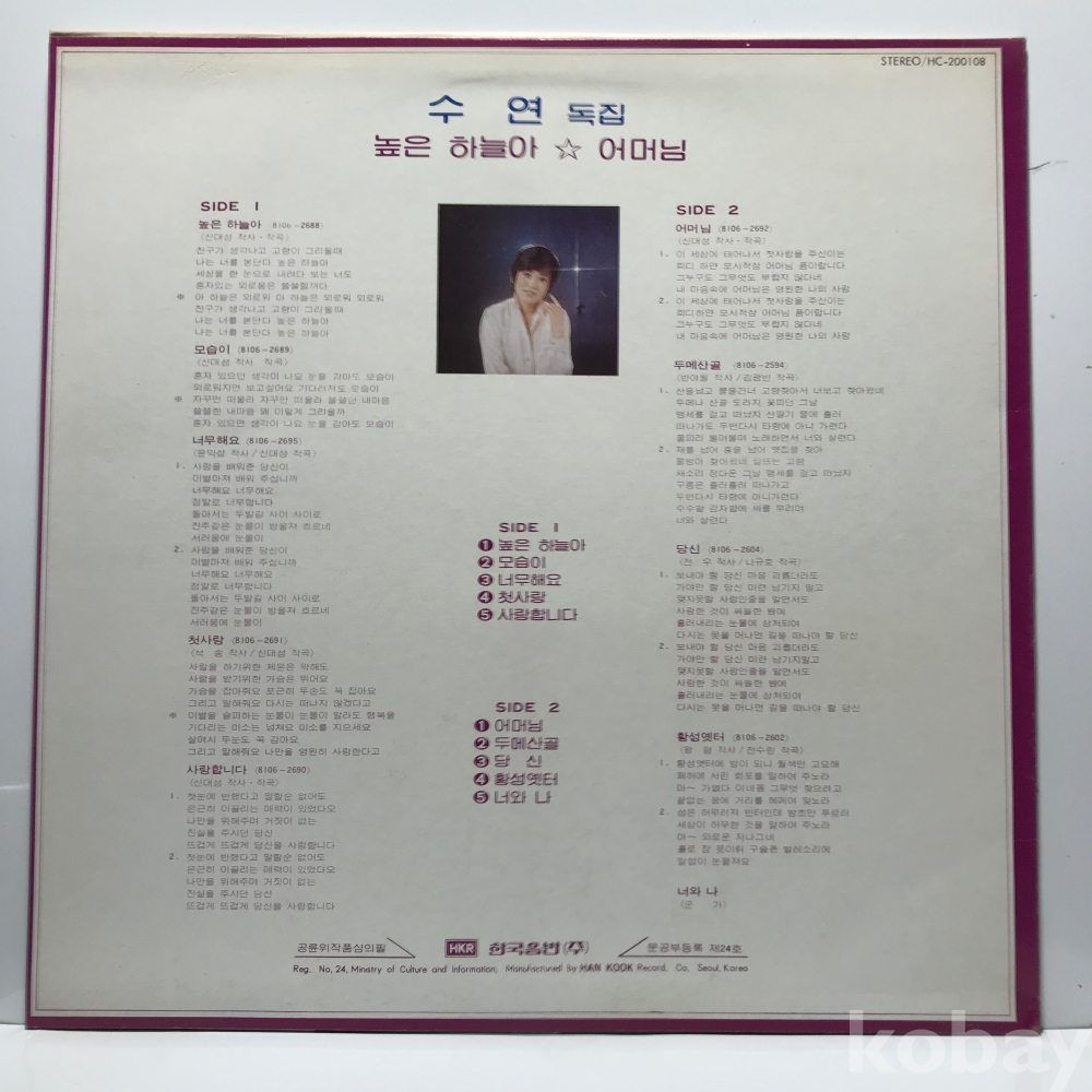 | 자켓상태 | EX : 약간의 마모, 모서리 찢김 존재 | 음반상태 | NM : 개봉했으나 미사용급, 스크래치 없음 | 발매정보 | 알수없음 | 가사지여부 | 무 |