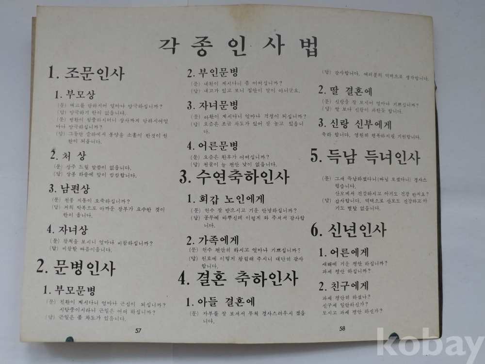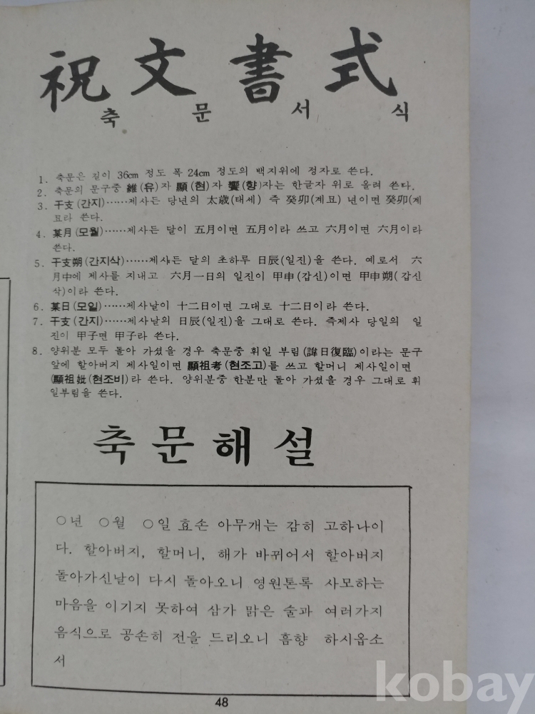 * 한자문, 고사성어, 서식, 상례절차, 지방서식, 축문서식, 기제사의 순서, 차례순서, 각종인사법, 가계표