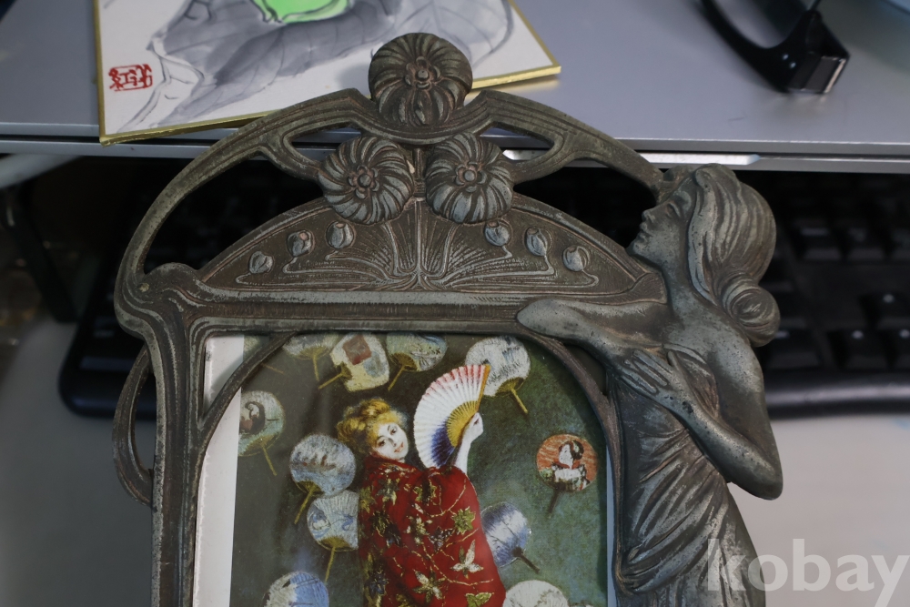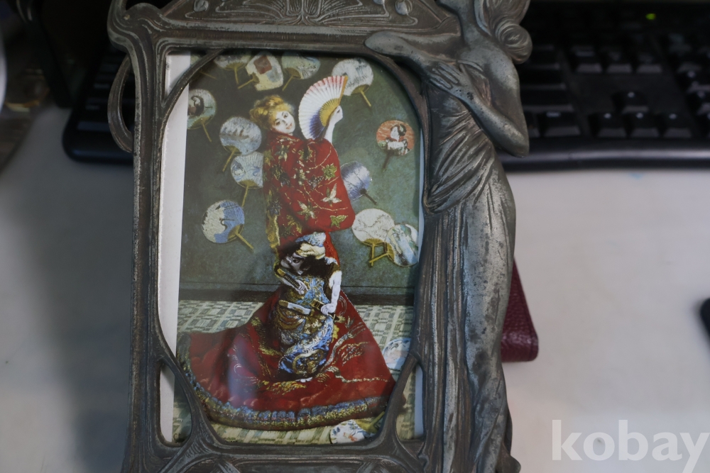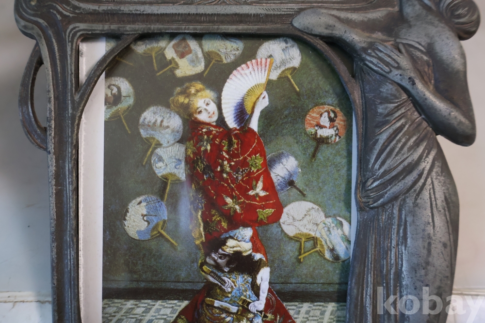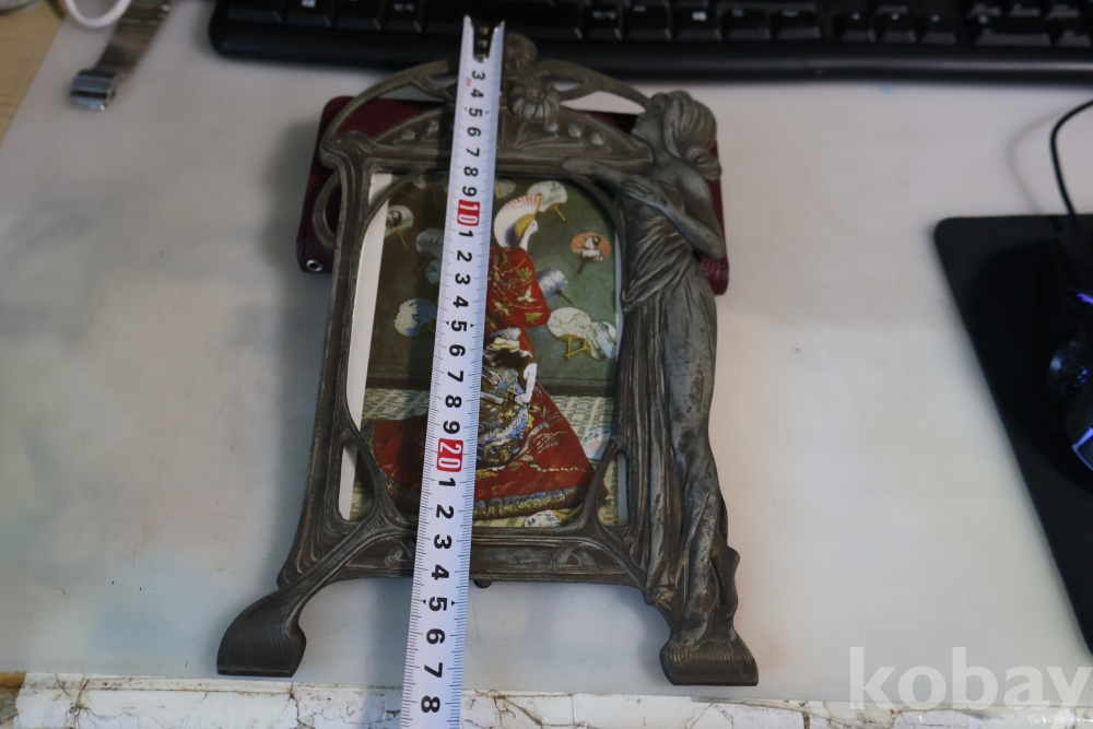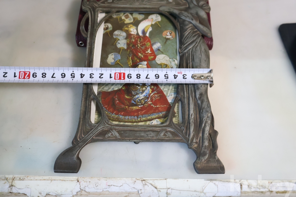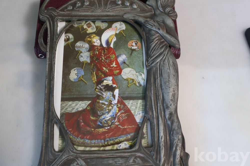 아름다운 금속 공에품 액자 임니다 아름다운 여인의 멋진 자태를 가진 1920 30대의 아트누보 이며 세월의 고태미를 가진 명품 임니다 .단단 한 금속 이며 지남 철이 붙지 않는 명물 임니다 유럽 프랑스 임니다 세월의 흔적이 보이는 극히 귀한 명품 임니다