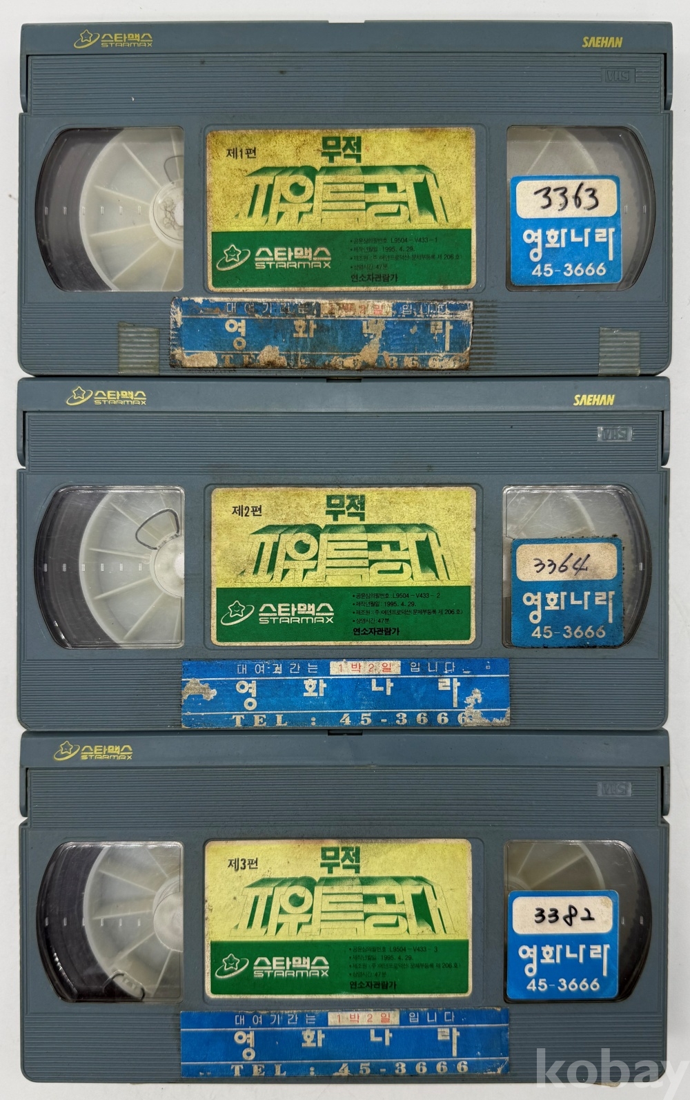 상품 설명 | 1) 무적 파워 특공대 제1편 / 1995년 / 테이프 라벨 일부 떨어짐 2) 무적 파워 특공대 제2편 / 1995년 / 테이프 라벨 일부 떨어짐 3) 무적 파워 특공대 제3편 / 1995년 / 테이프 라벨 일부 떨어짐 |