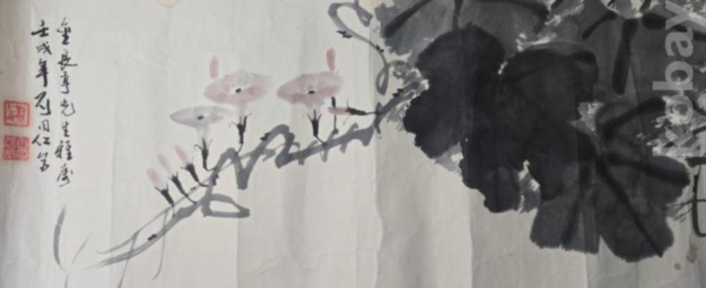 <투킴스> 작가미상, 수려한 농담의 수묵담채화나팔꽃 그림
