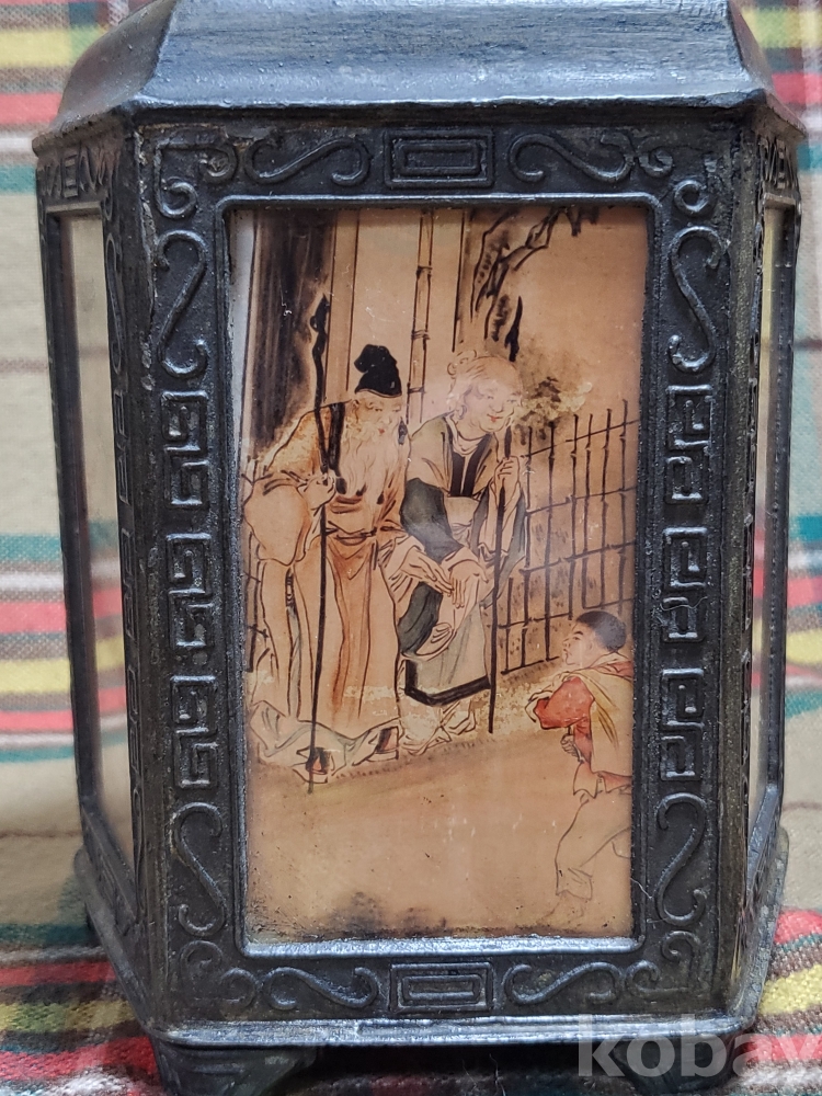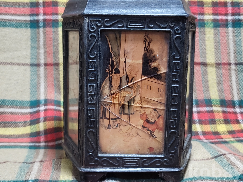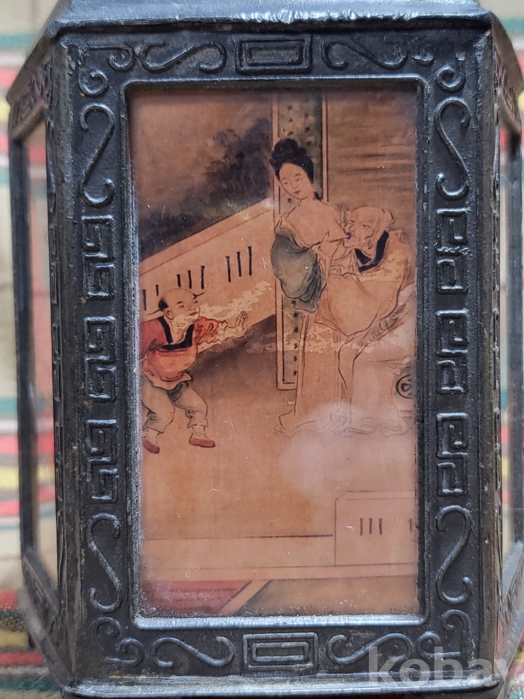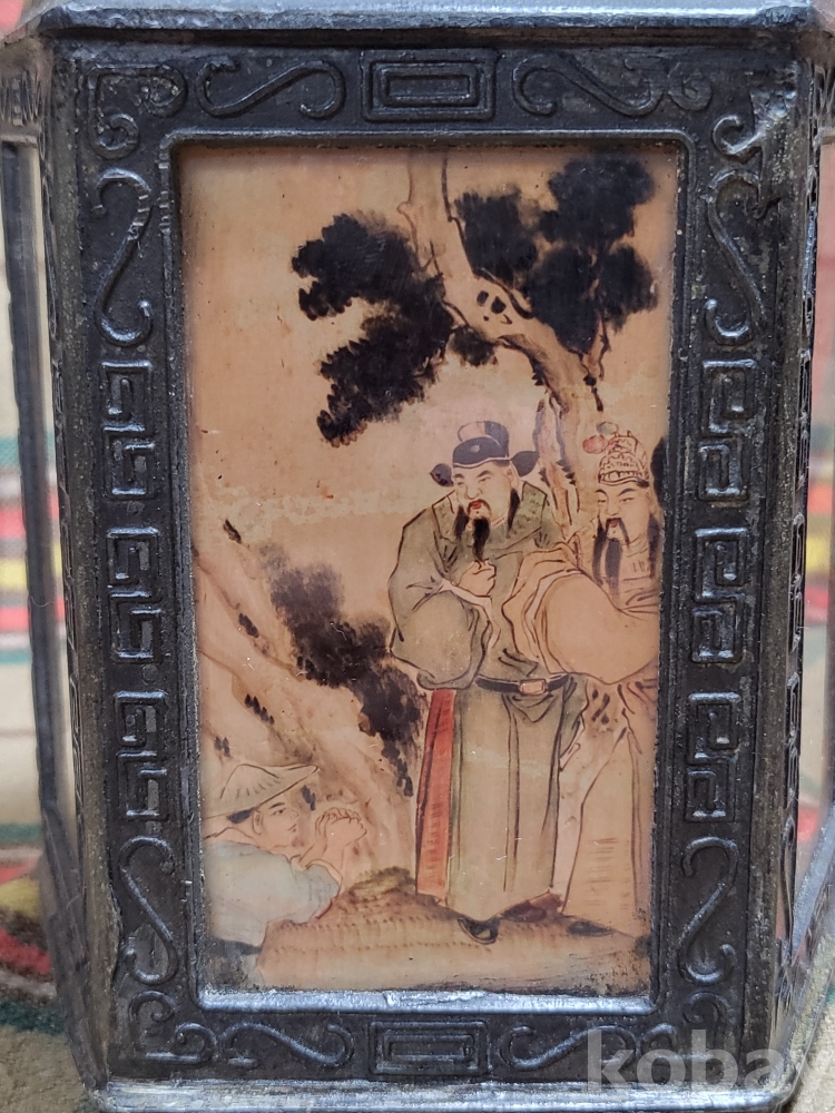 5면을 가진 5각차통으로 각면엔 세필로 그려진 정교한 채색화가 유리판아래에 그려져있습니다.