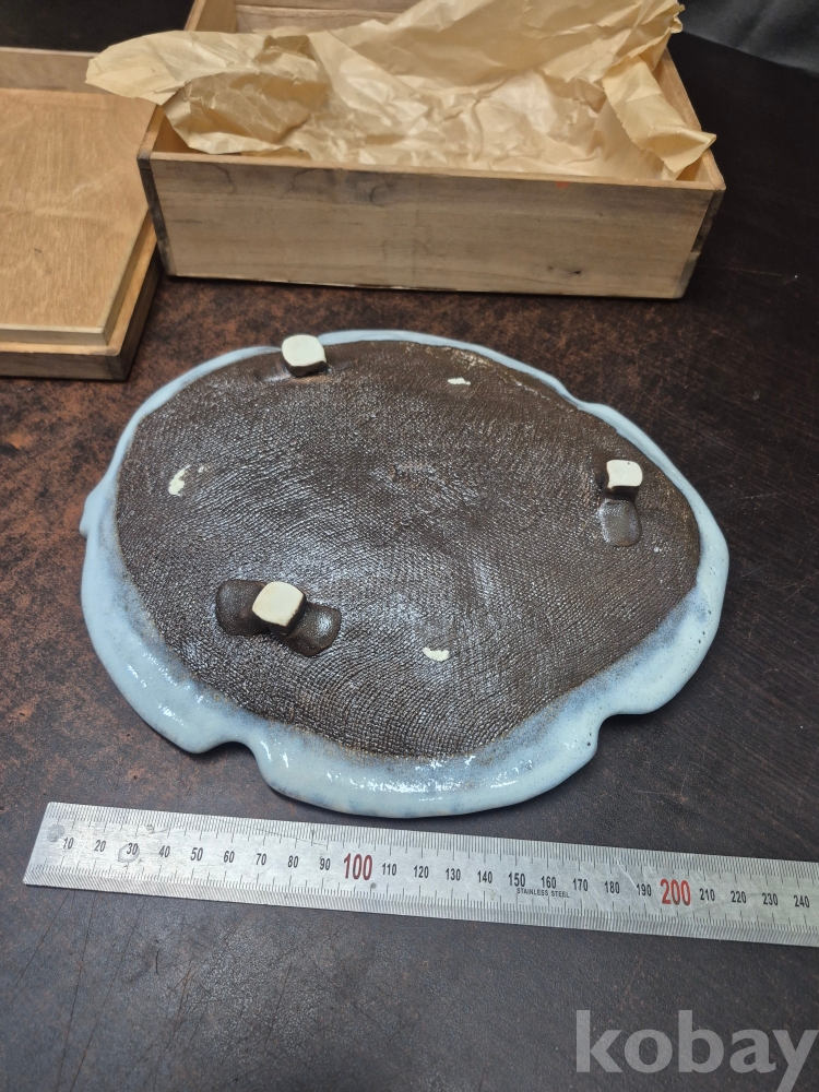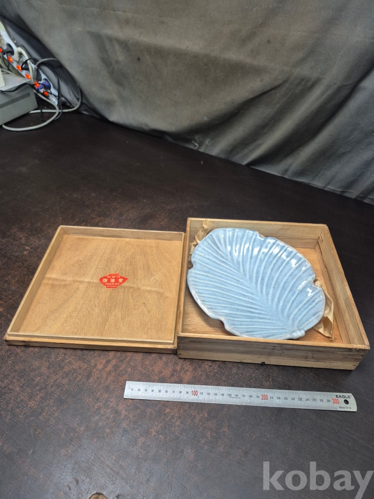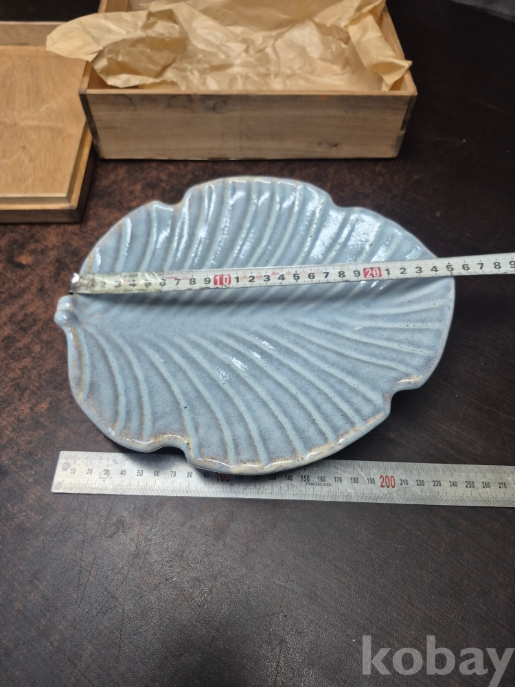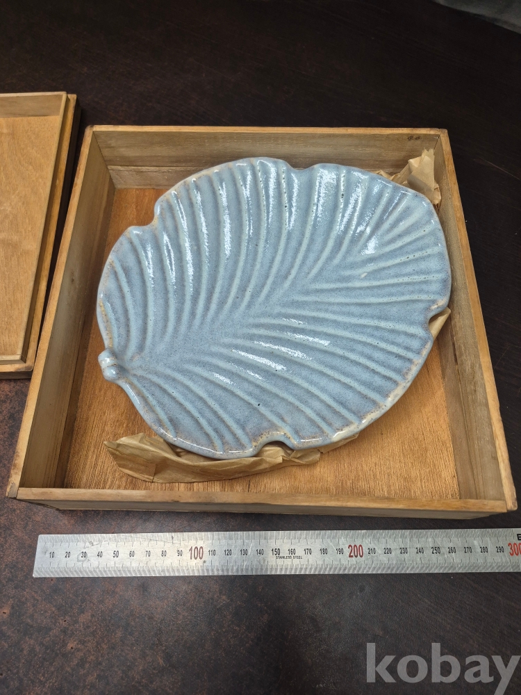 일본도자기 작가 나뭇잎모양 도자기 작가 가 만든 작품 도자기 나뭇잎 모양 미사용품 박스품 (오동나무 나무박스) 26*23*6