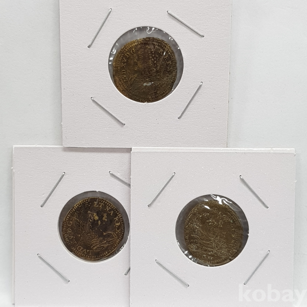 - 1715년 프랑스 19mm 루이 15세 등 메달(토큰) 3종 모음