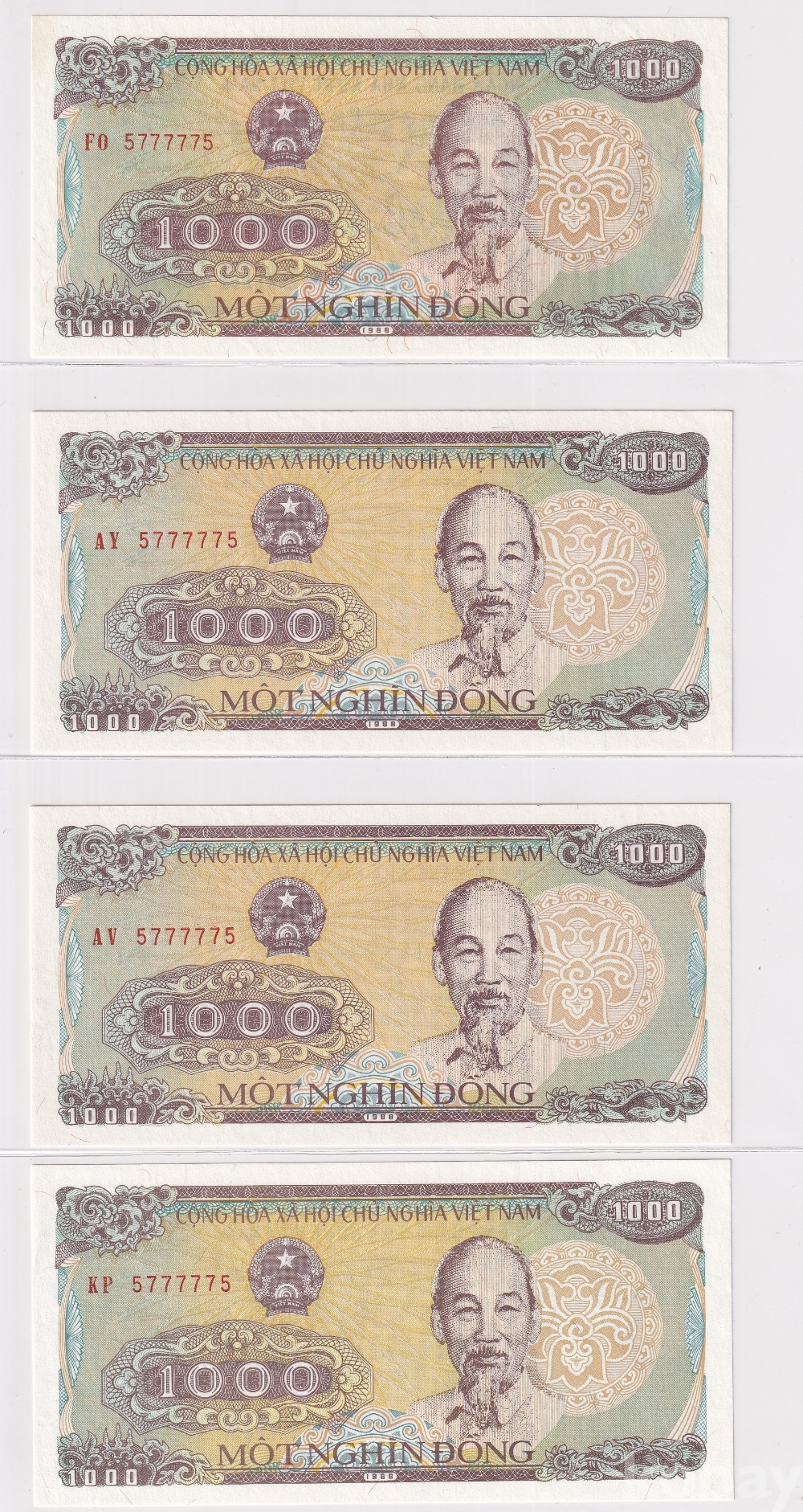 [베트남 지폐 특이번호 모음展] 1988년 1000동 5 77777 5 투 디지트 오봉 레이더 4쌍둥이