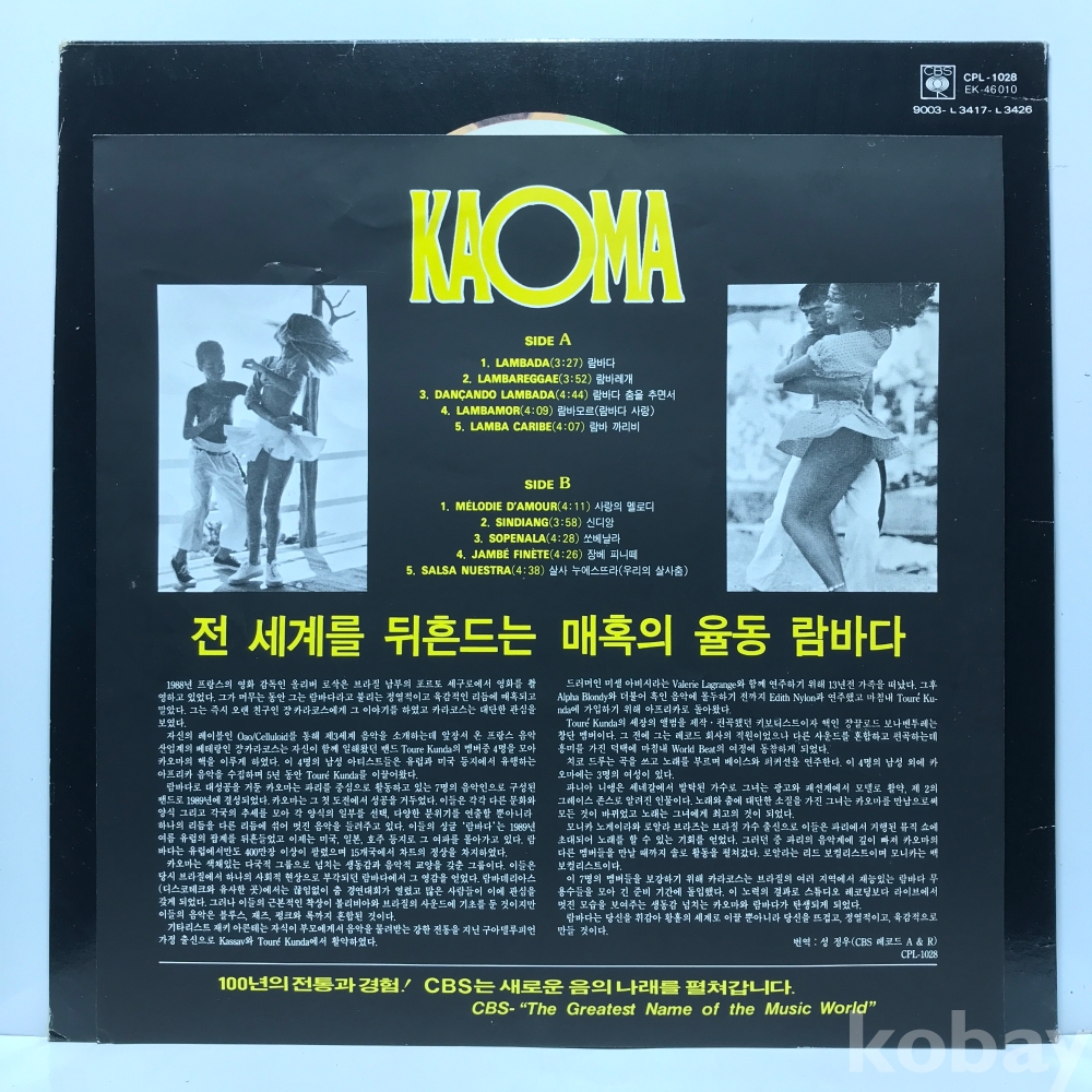 LP 10,720-20 KAOMA - WORLDBEAT . 자켓 EX+ 알판 EX 90 년 국내반