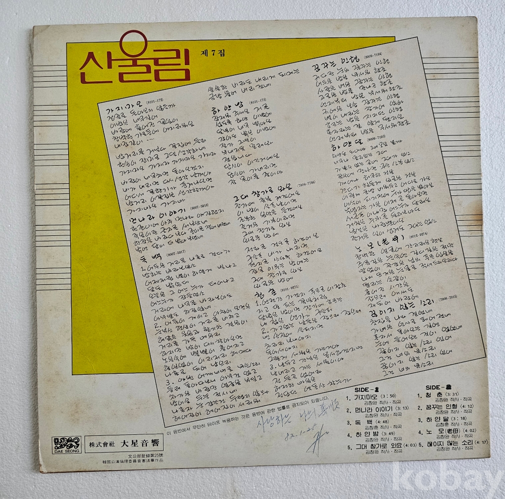 | 자켓상태 | EX : 약간의 마모, 모서리 찢김 존재 | 음반상태 | VG : 생활 기스 다수, 가벼운 노이즈 존재 | 발매정보 | 초반 | 가사지여부 | 무 |