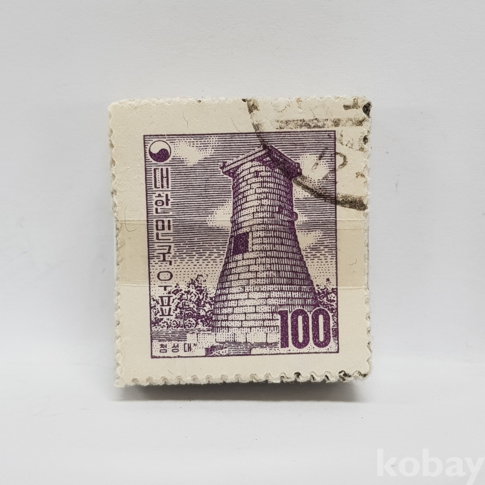 - - 1950년대 환화 100환 첨성대 일부인 미확인 사용제 우표 약 100매 묶음