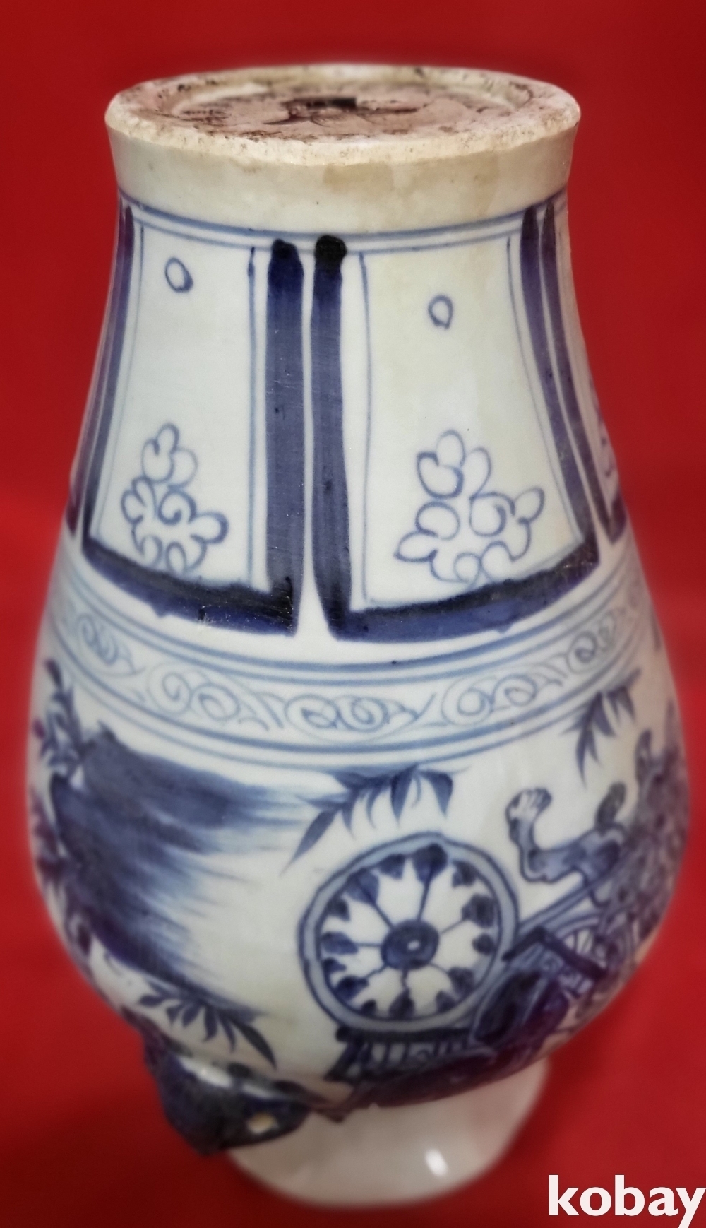 징기스칸 관지 귀곡자하산도 문양 화형병입니다,
