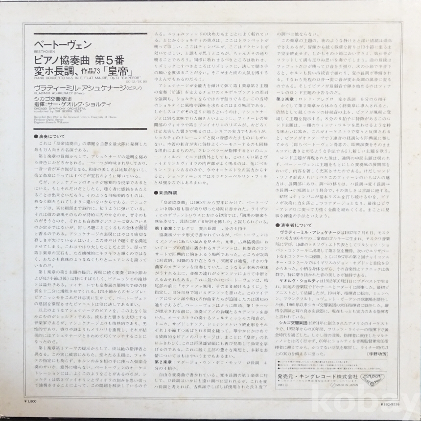 Beethoven - Vladimir Ashkenazy, Chicago Symphony Orchestra, Sir Georg Solti – Piano Concerto No. 5 "Emperor"
