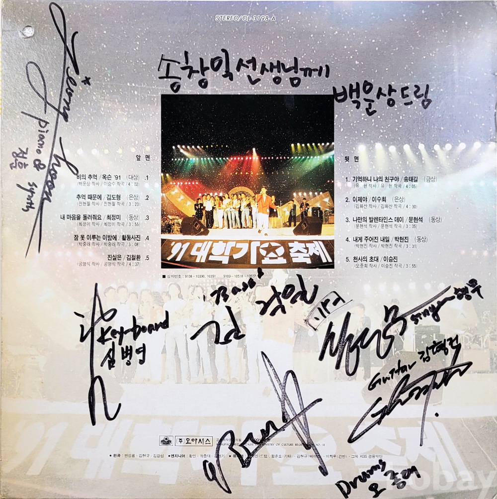 상 품 설 명 | 사진 참고 / 대상곡 '비의 추억' 작사가 백운상과 관련 뮤지션들의 싸인 모음 음반. |