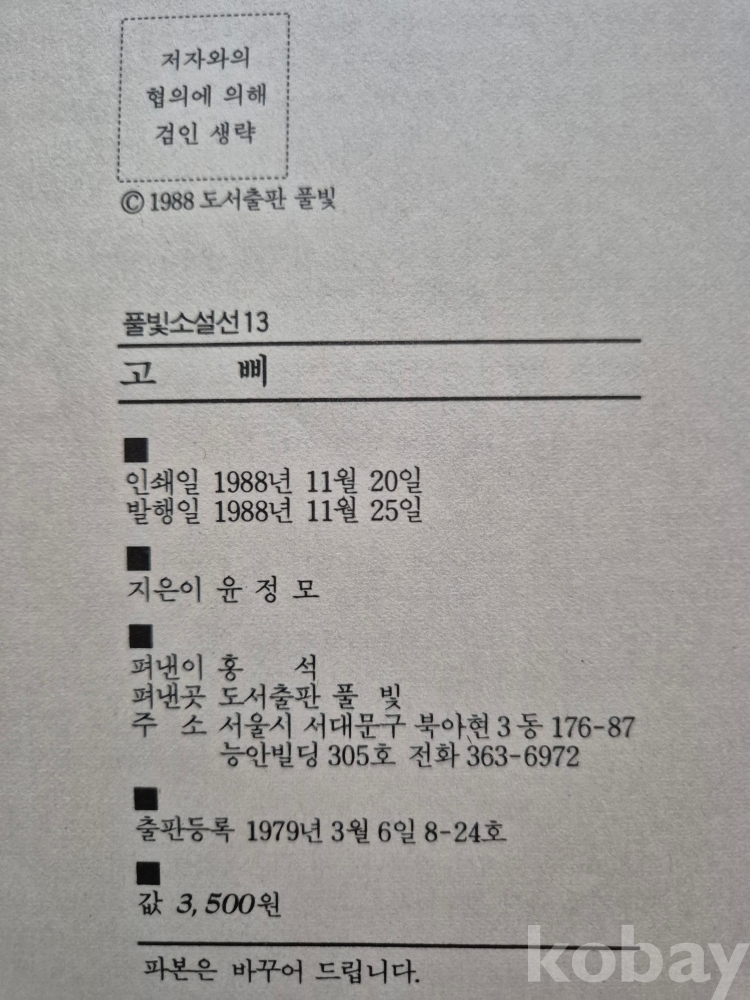 '풀빛'에서 '풀빛소설선[13]'으로 발행. 349쪽. 15.3X22.5X2.0cm