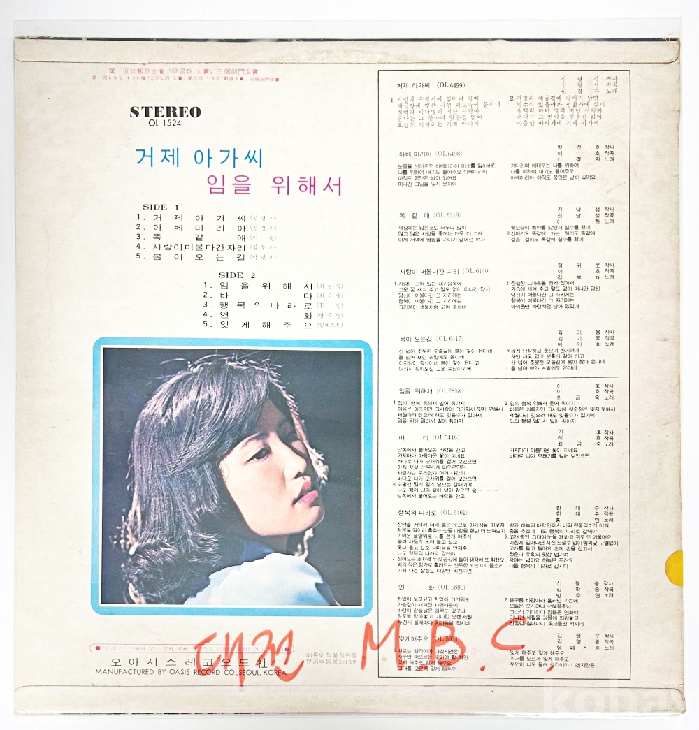 상품 설명 | Side A 1. 거제 아가씨 2. 아베마리아 3. 똑같애 4. 사랑이 머물다간 자리 5. 봄이 오는길 Side B 1. 임을 위해서 2. 바다 3. 행복의 나라로 4. 연화 5. 잊게해주오 | ||