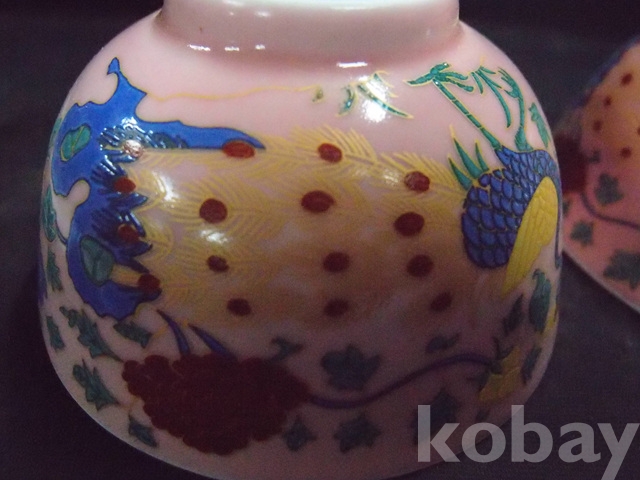 e-48.입체감이있는 금채대명성화년제 공작문배1쌍