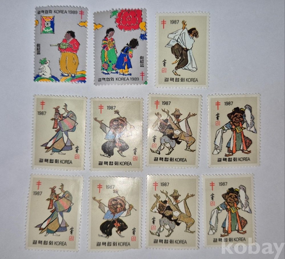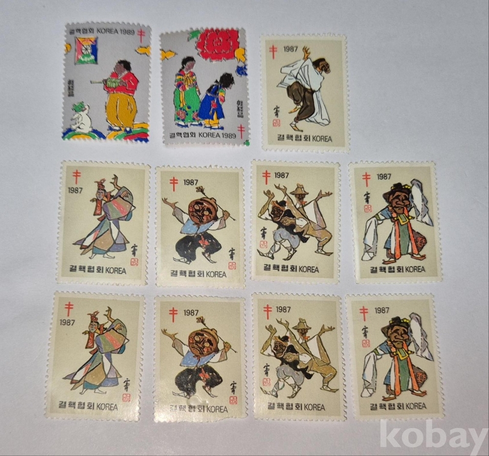 1987, 89년 '민속 놀이' 국내 크리스마스 씰 세트입니다.